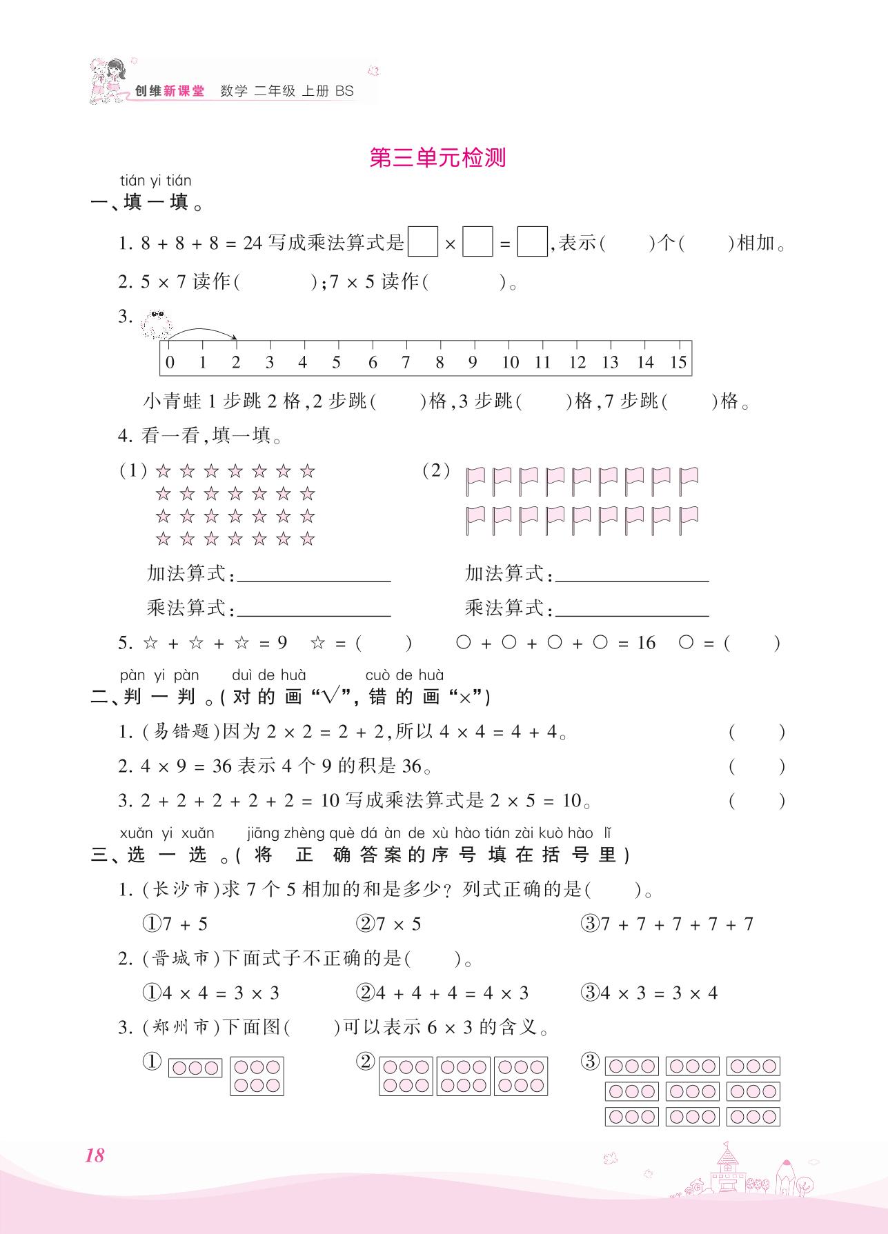 2021上册二年级数学北师版 三 数一数与乘法——第三单元检测