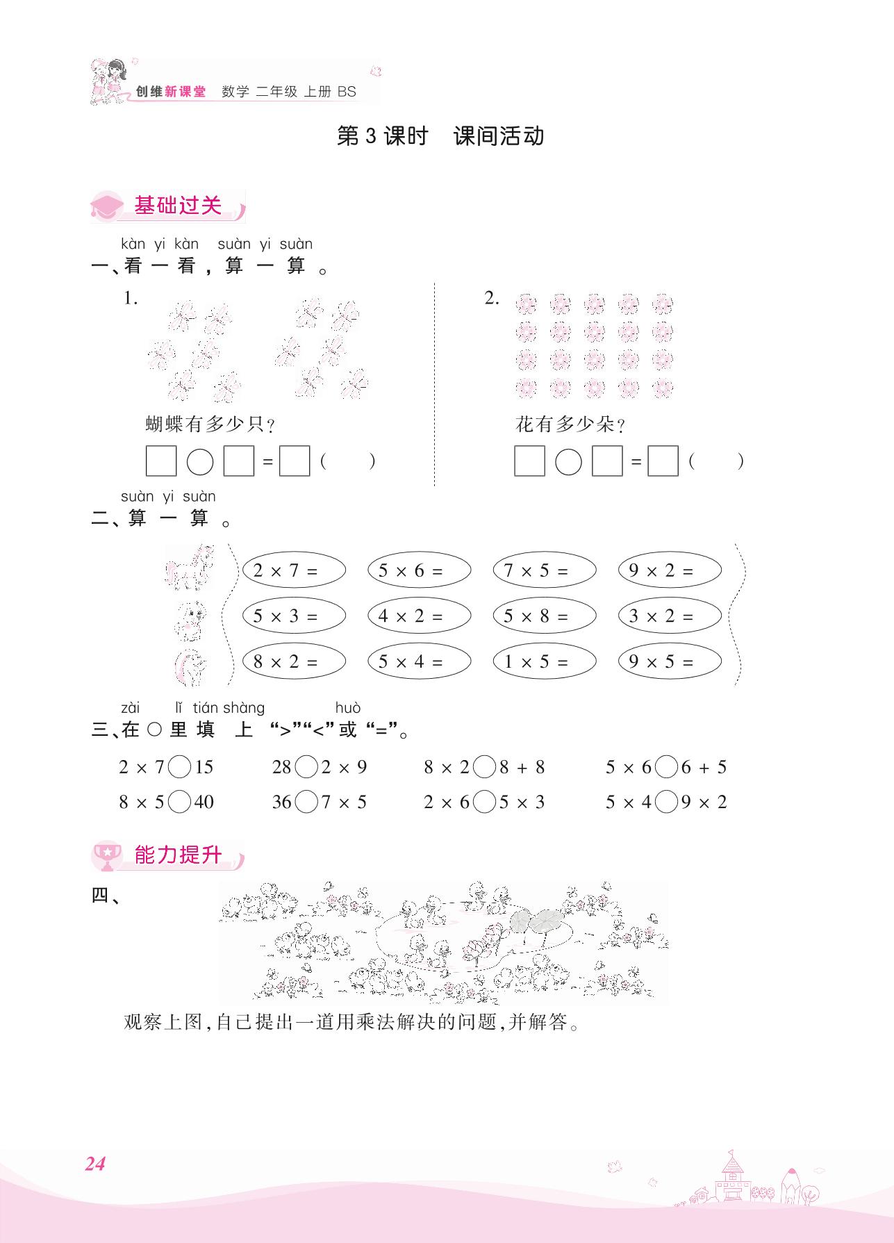 2021上册二年级数学北师版 五 2~5的乘法口诀——第3课时 课间活动