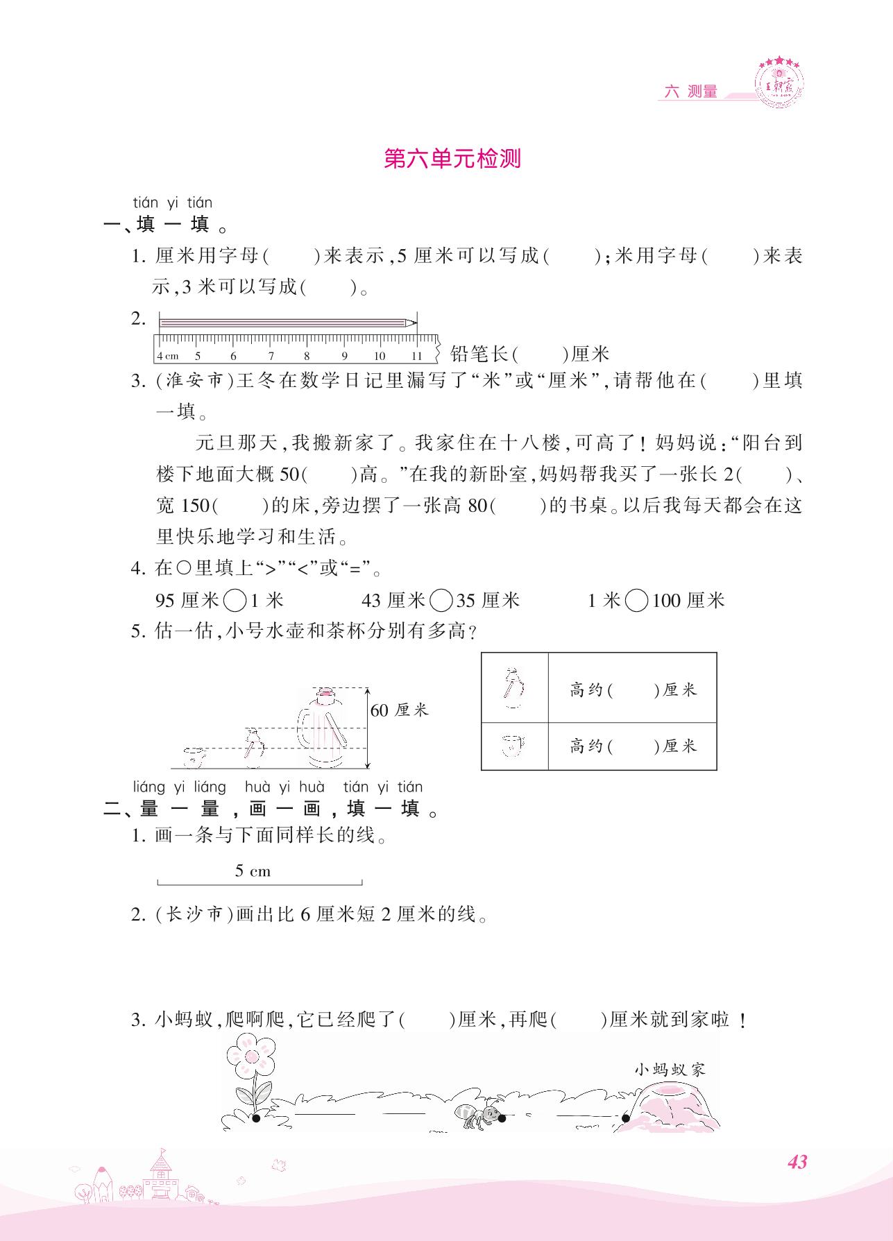 2021上册二年级数学北师版 六 测量——第六单元检测