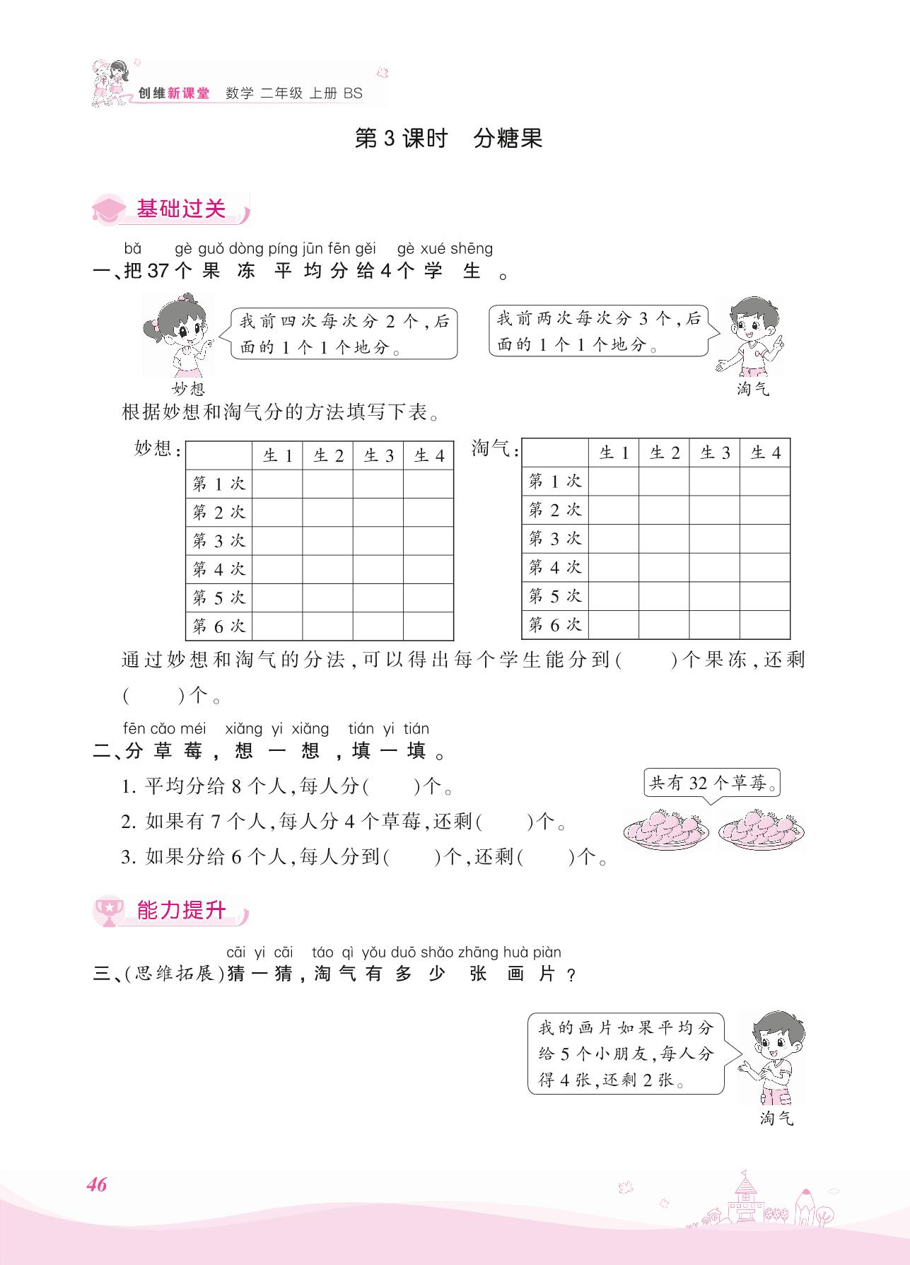 2021上册二年级数学北师版 七 分一分与除法——第3课时 分糖果
