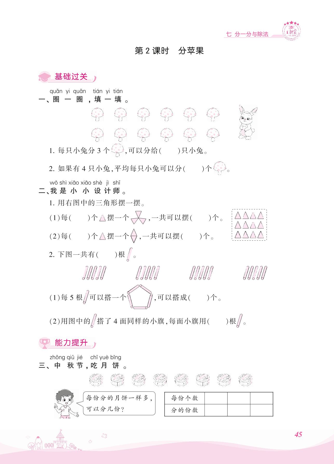 2021上册二年级数学北师版 七 分一分与除法——第2课时 分苹果