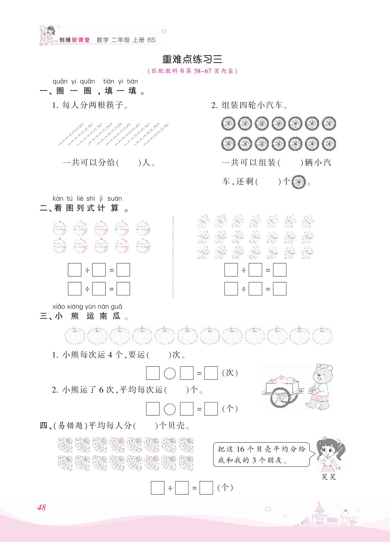 2021上册二年级数学北师版 七 分一分与除法——重难点练习三