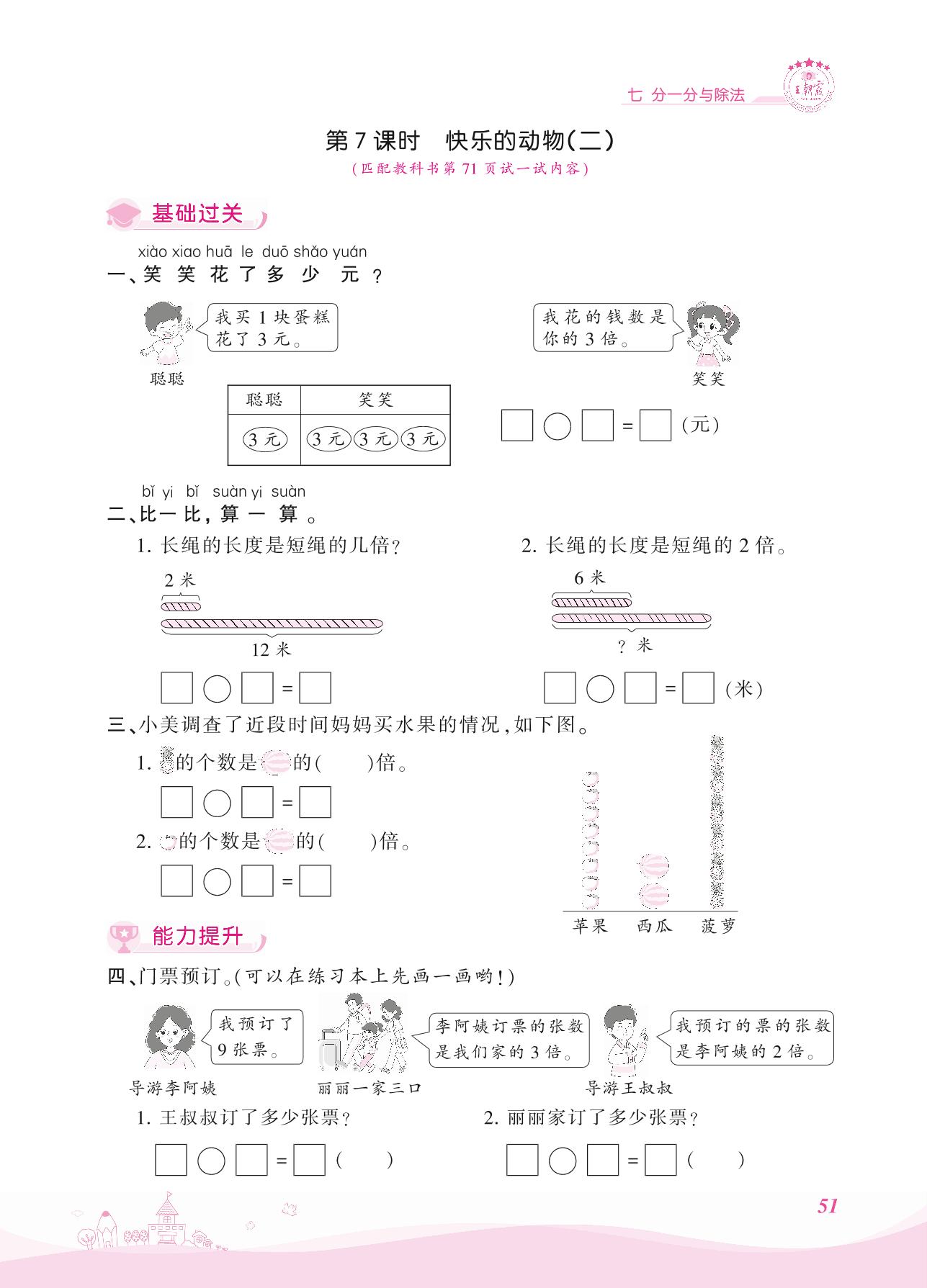 2021上册二年级数学北师版 七 分一分与除法——第7课时 快乐的动物(二)