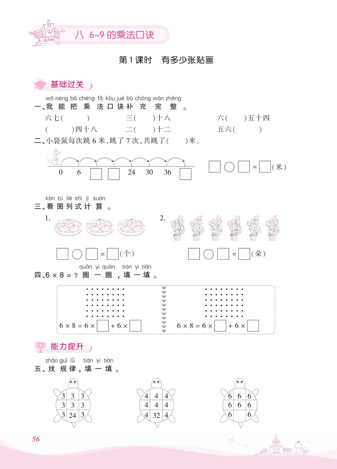 2021上册二年级数学北师版 八 6~9的乘法口诀——第1课时 有多少张贴画