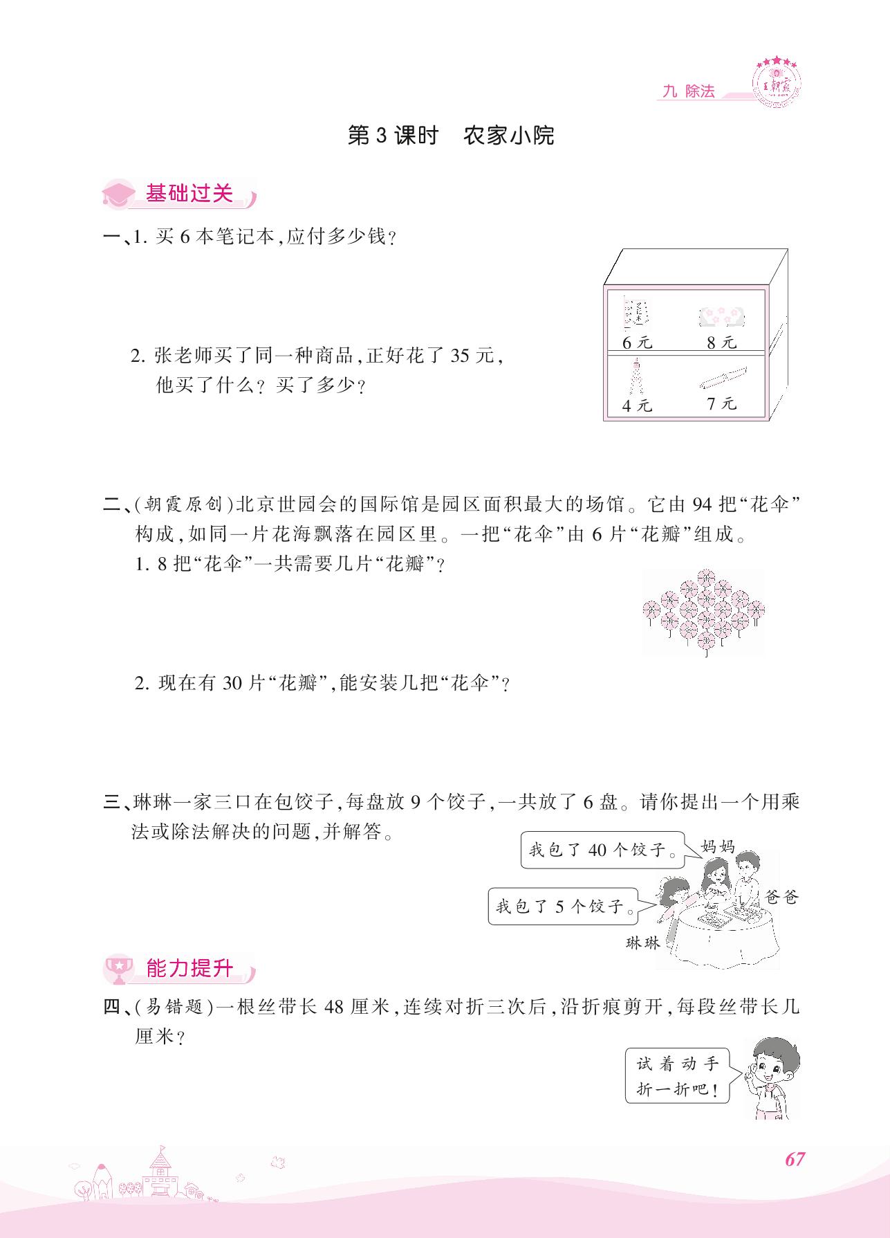 2021上册二年级数学北师版 九 除法——第3课时 农家小院