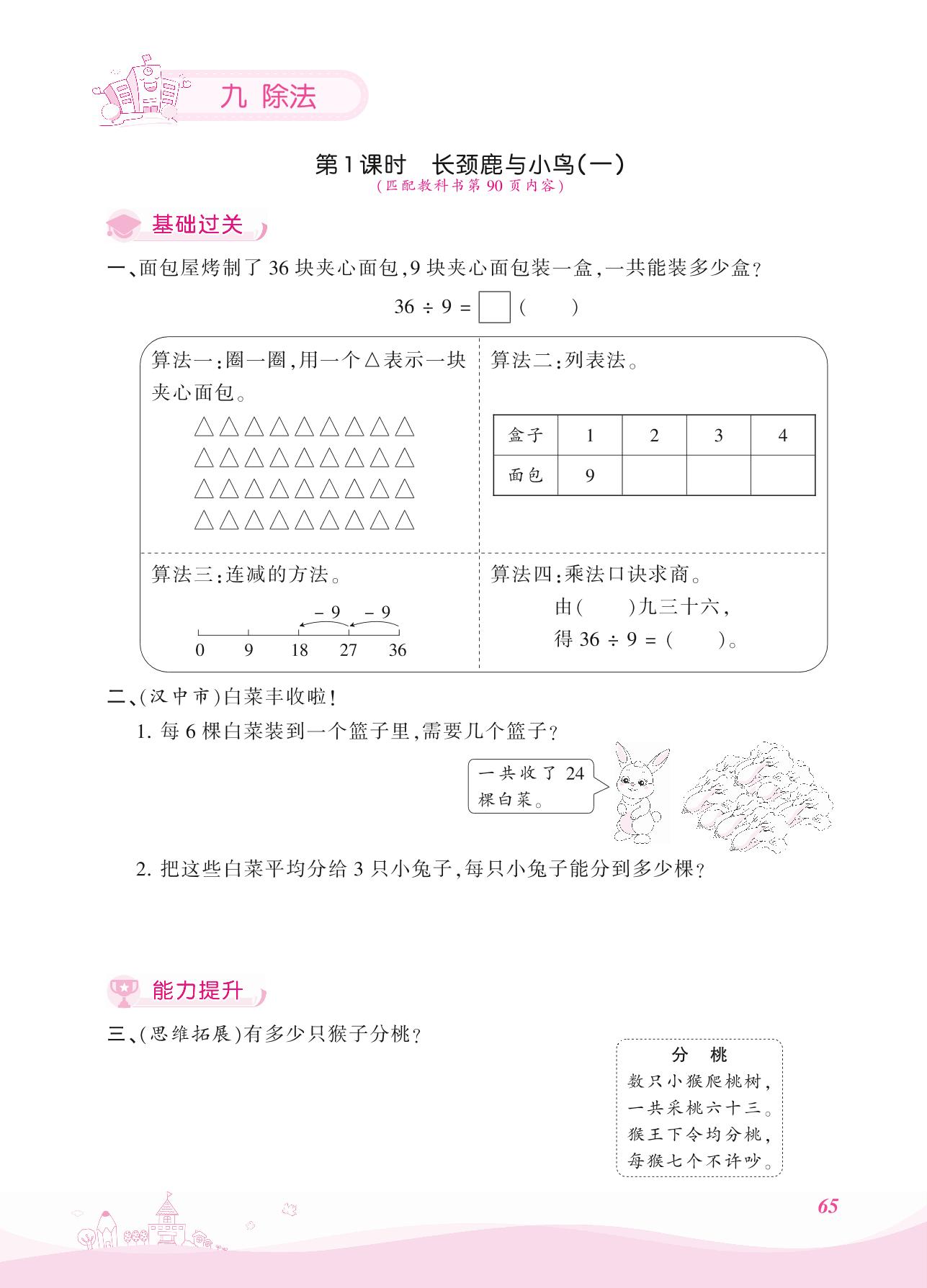 2021上册二年级数学北师版 九 除法——第1课时 长颈鹿与小鸟(一)