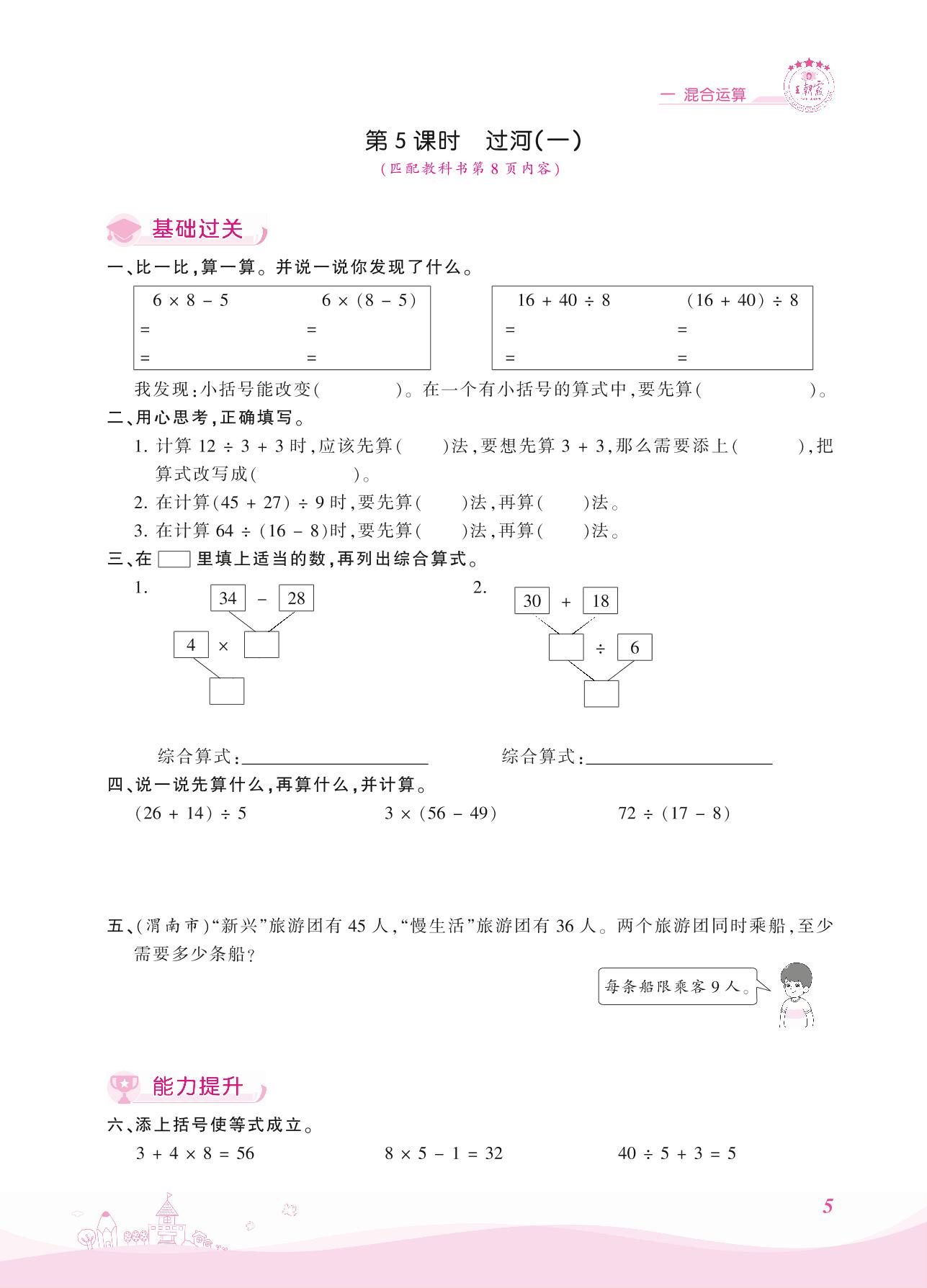 2021上册三年级数学北师版 一 混合运算——第5课时 过河(一)
