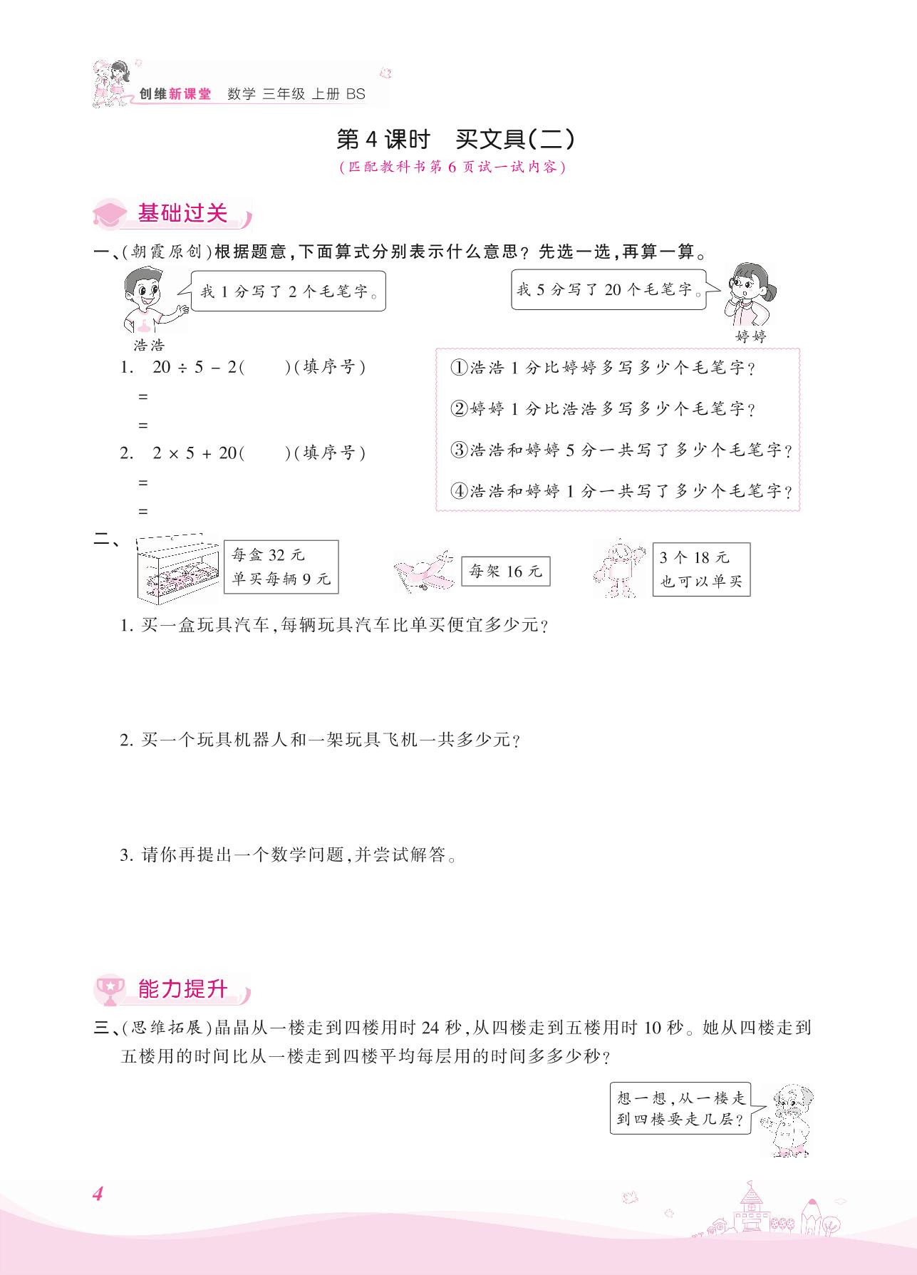 2021上册三年级数学北师版 一 混合运算——第4课时 买文具(二)