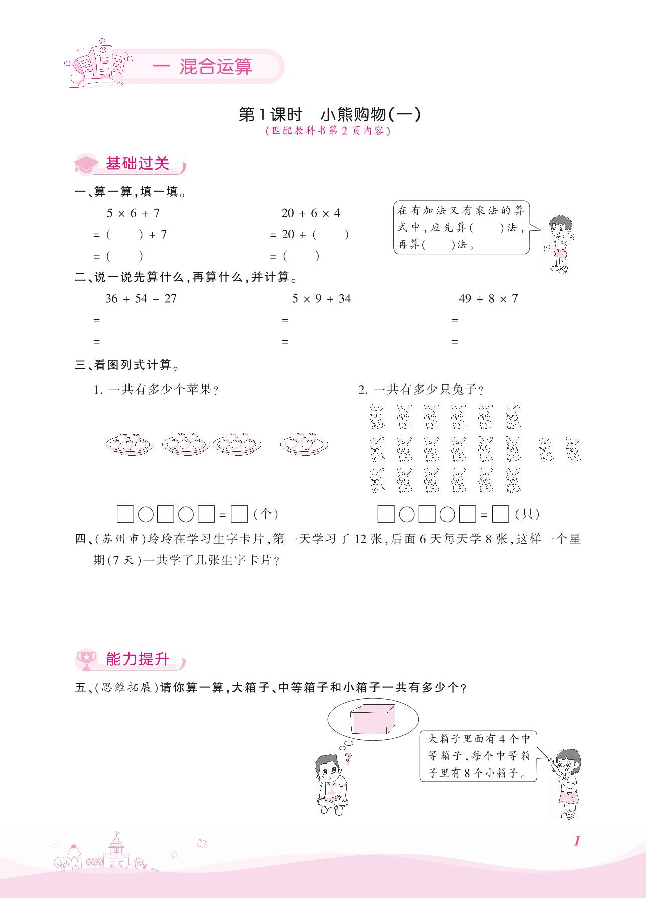 2021上册三年级数学北师版 一 混合运算——第1课时 小熊购物(一)