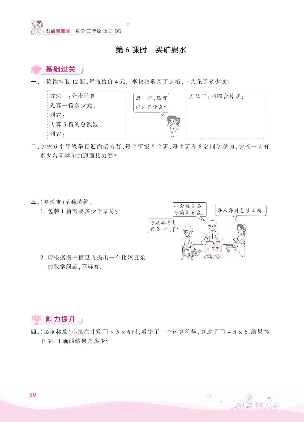 2021上册三年级数学北师版 六 乘法——第6课时 买矿泉水