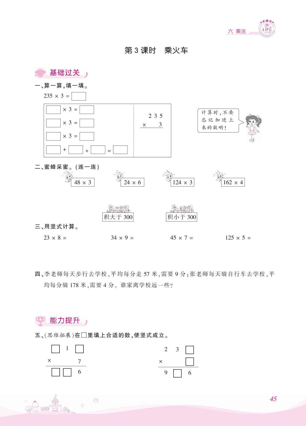 2021上册三年级数学北师版 六 乘法——第3课时 乘火车