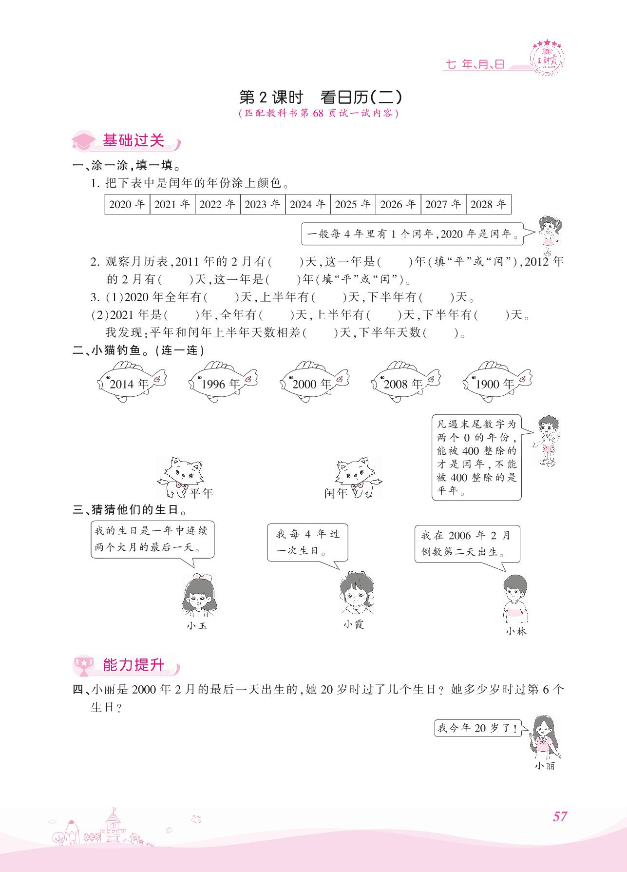 2021上册三年级数学北师版 七 年、月、日——第2课时 看日历(二)