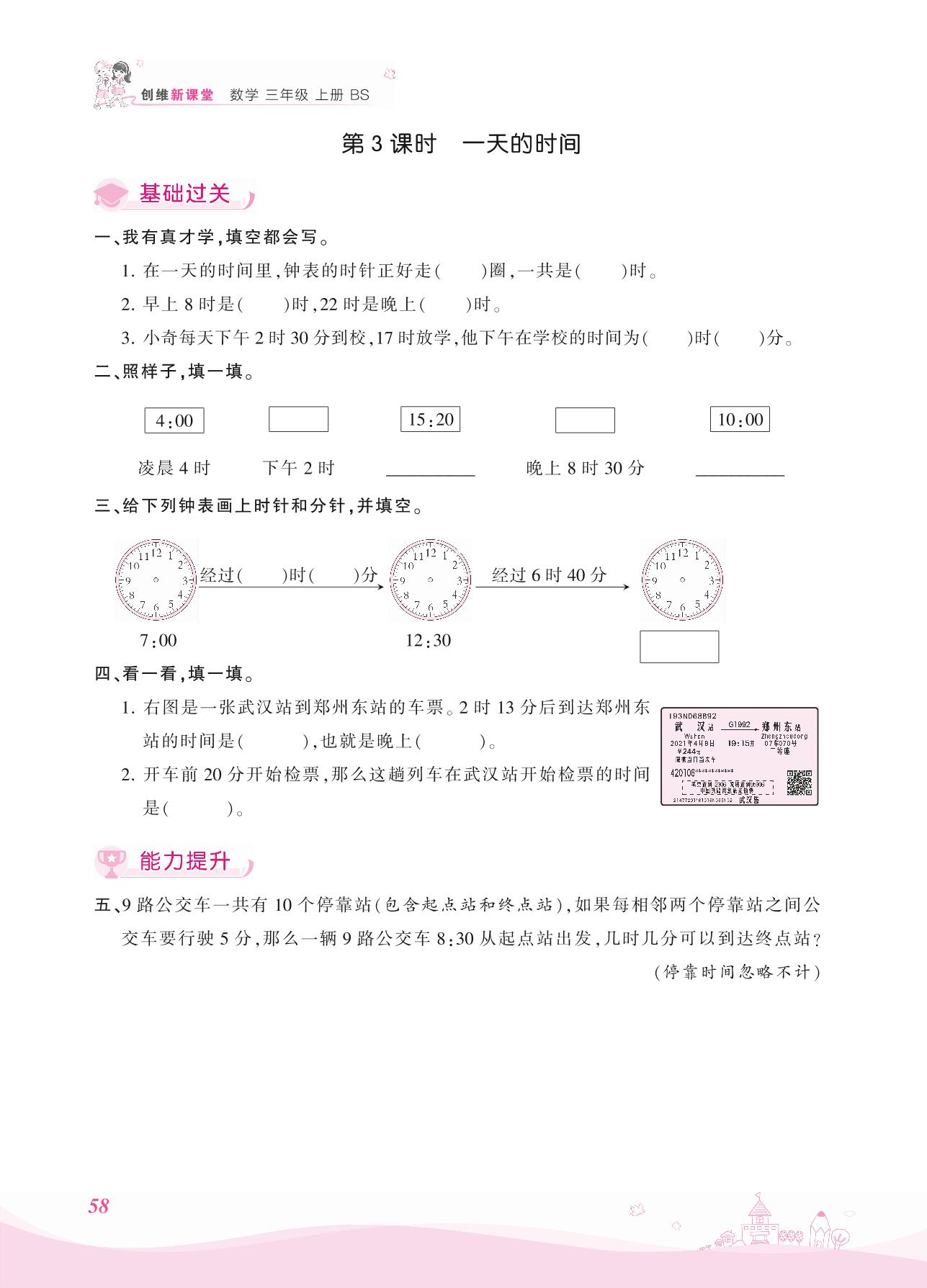 2021上册三年级数学北师版 七 年、月、日——第3课时 一天的时间