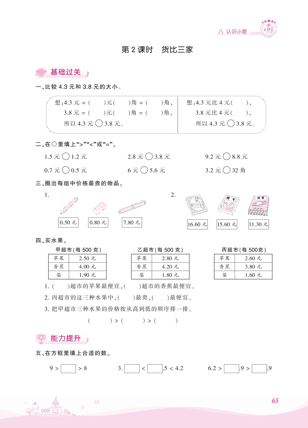 2021上册三年级数学北师版 八 认识小数——第2课时 货比三家