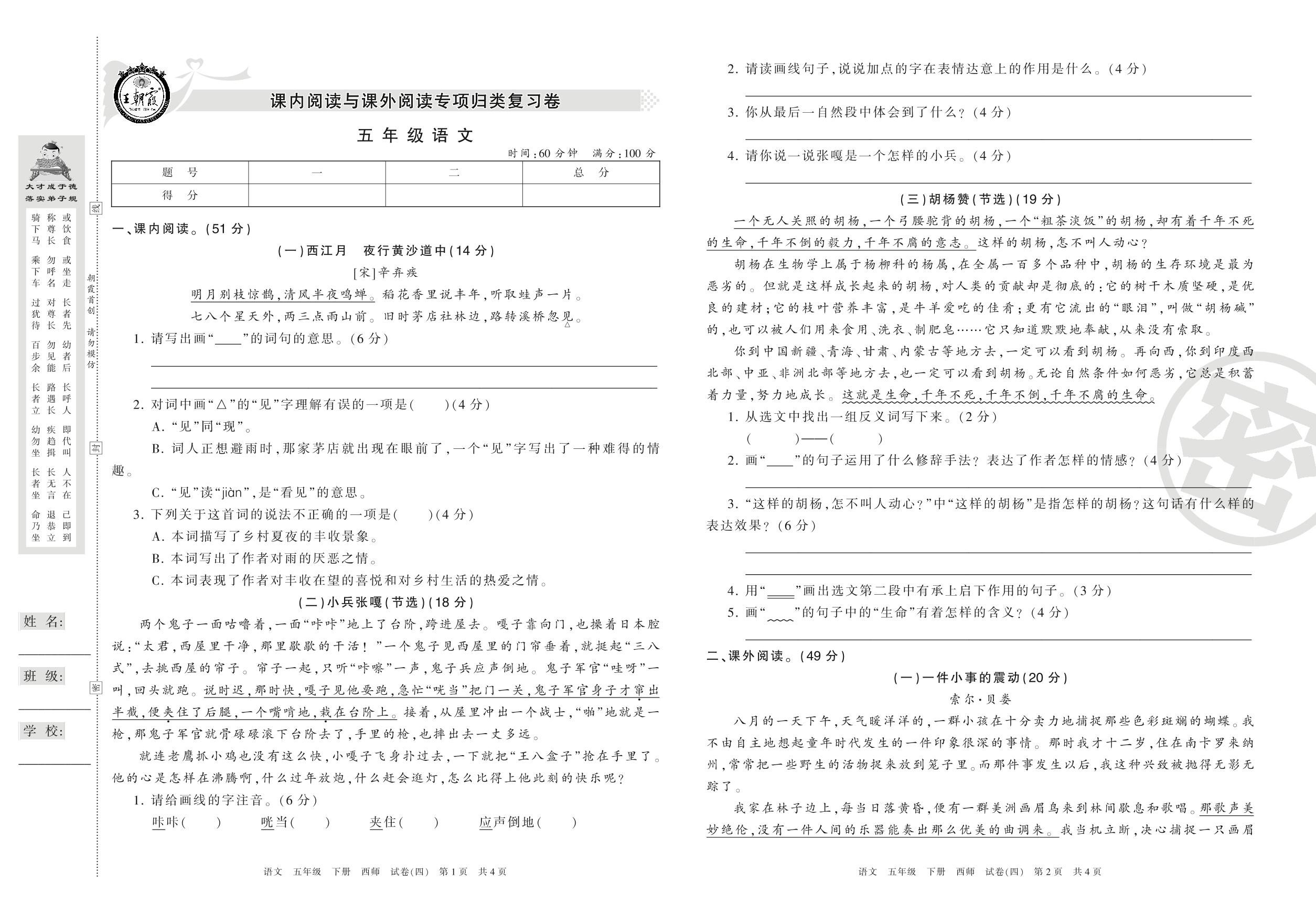 王朝霞期末专项卷五年级下册语文(西师版)_R210801210905【4】