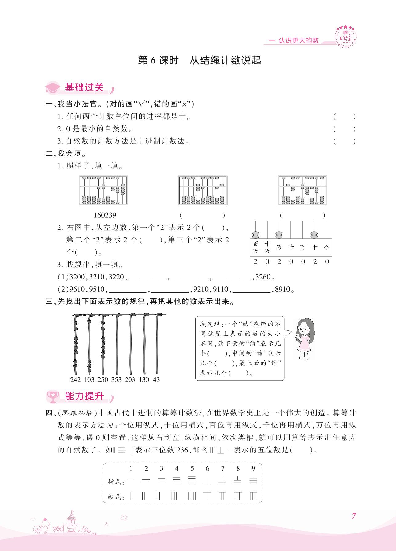2021上册四年级数学北师版 一 认识更大的数——第6课时 从结绳计数说起