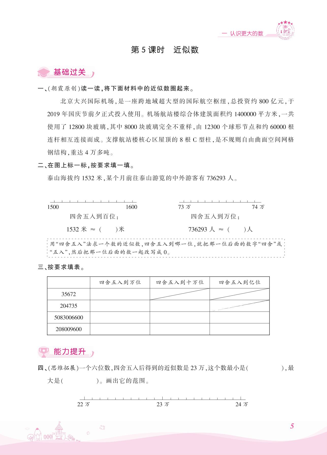 2021上册四年级数学北师版 一 认识更大的数——第5课时 近似数