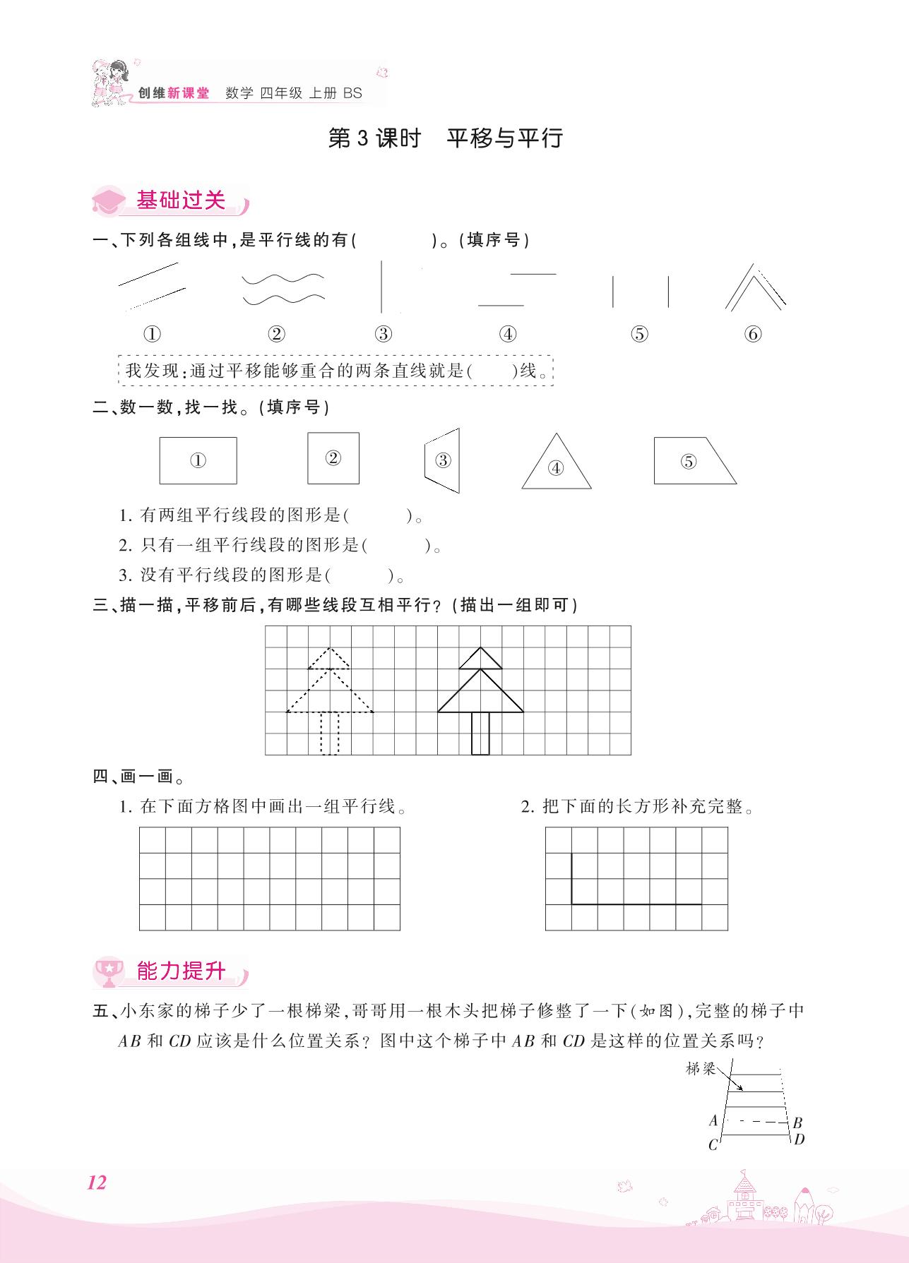 2021上册四年级数学北师版 二 线与角——第3课时 平移与平行
