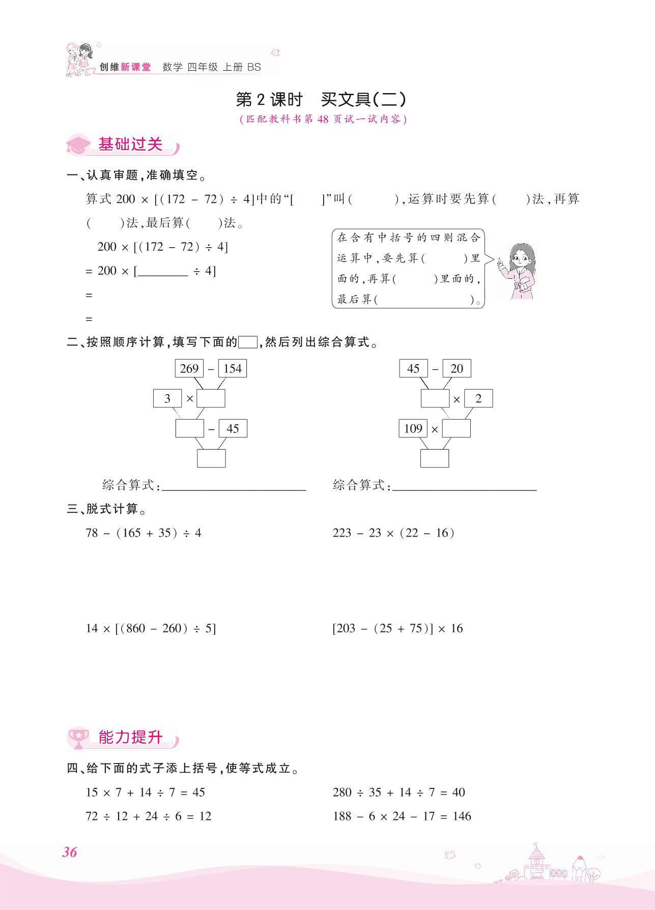 2021上册四年级数学北师版 四 运算律——第2课时 买文具(二)