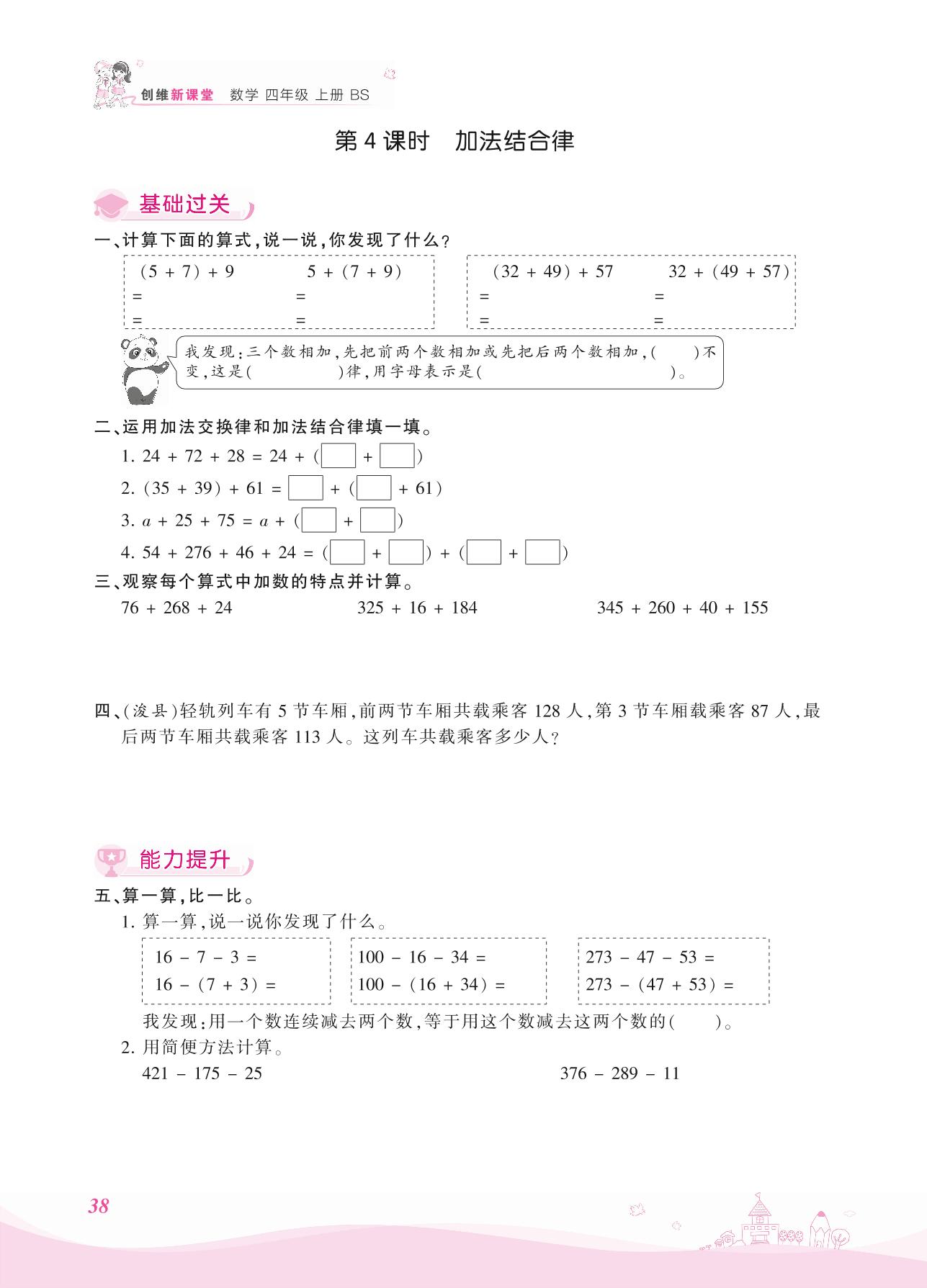 2021上册四年级数学北师版 四 运算律——第4课时 加法结合律