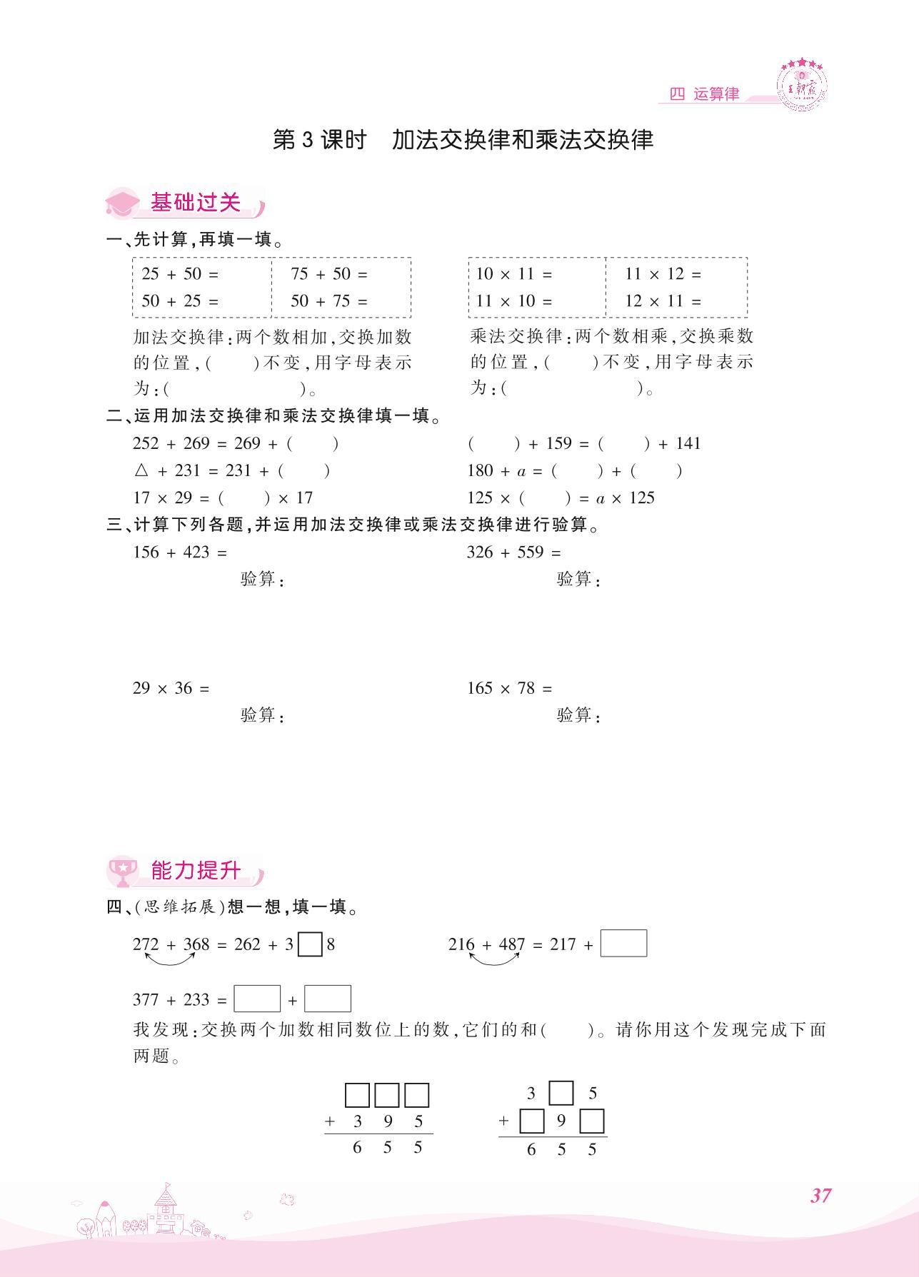 2021上册四年级数学北师版 四 运算律——第3课时 加法交换律和乘法交换律