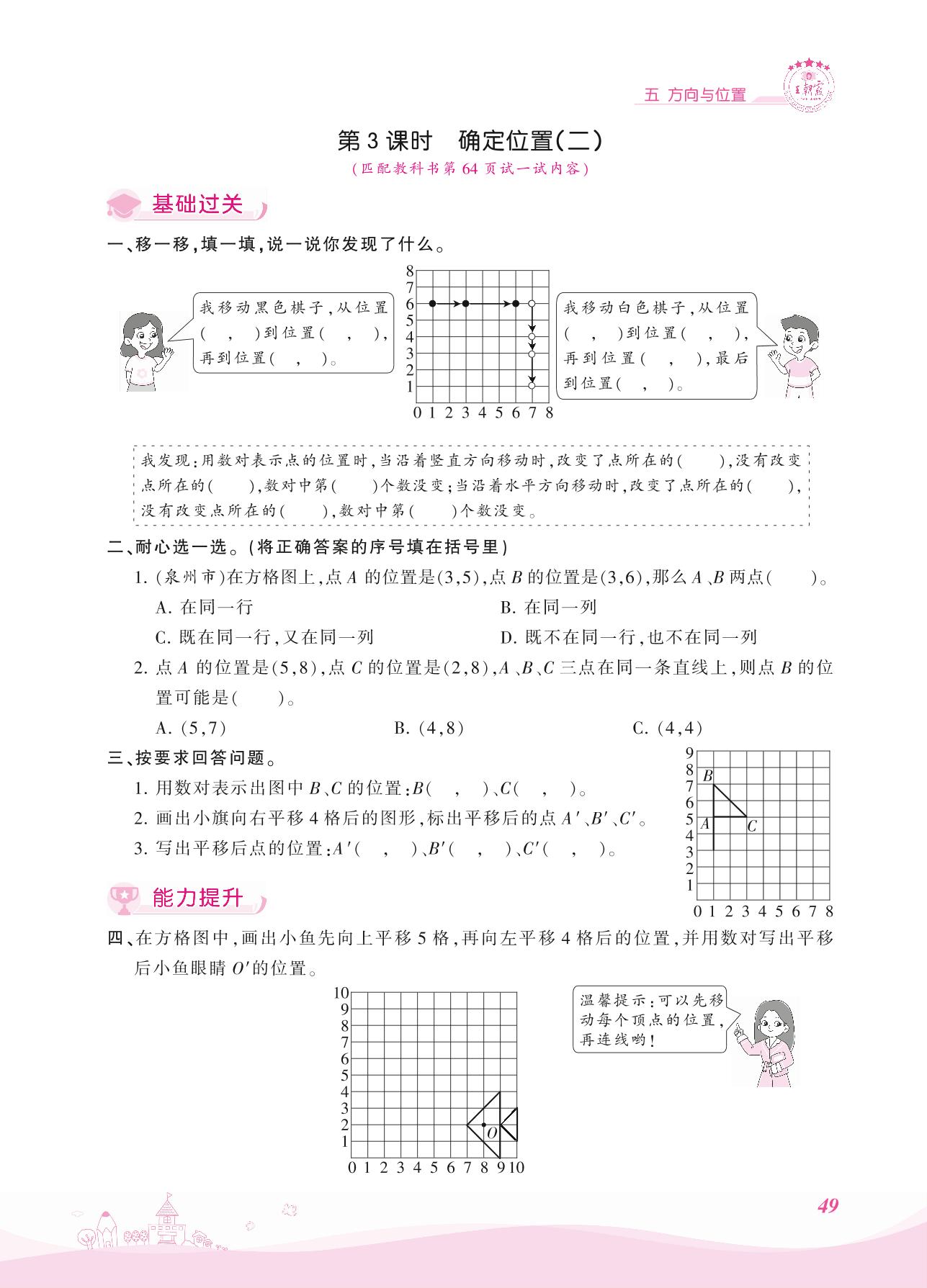 2021上册四年级数学北师版 五 方向与位置——第3课时 确定位置(二)