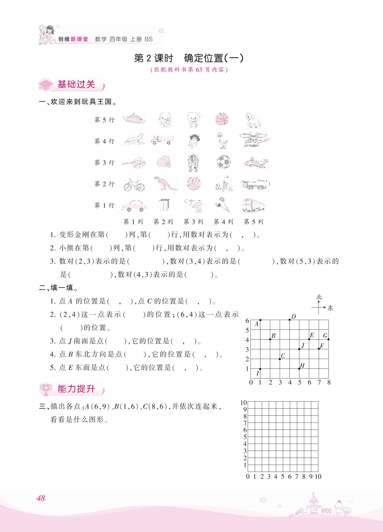 2021上册四年级数学北师版 五 方向与位置——第2课时 确定位置(一)