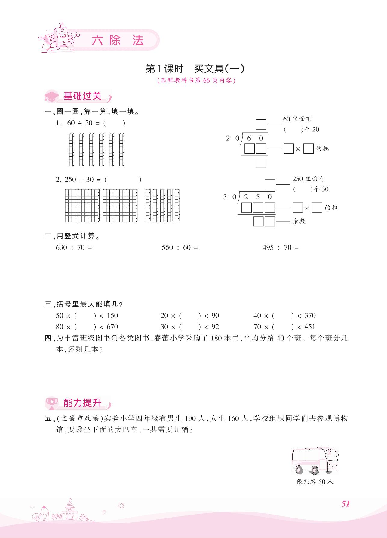 2021上册四年级数学北师版 六 除法——第1课时 买文具(一)