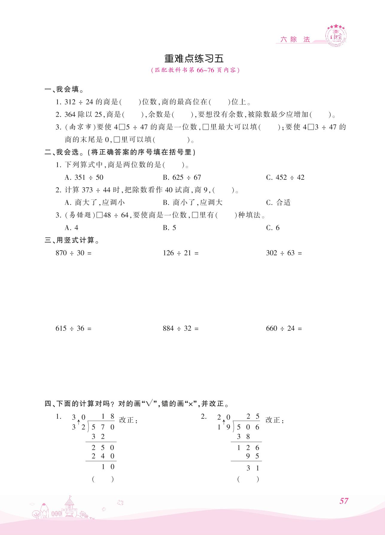 2021上册四年级数学北师版 六 除法——重难点练习五