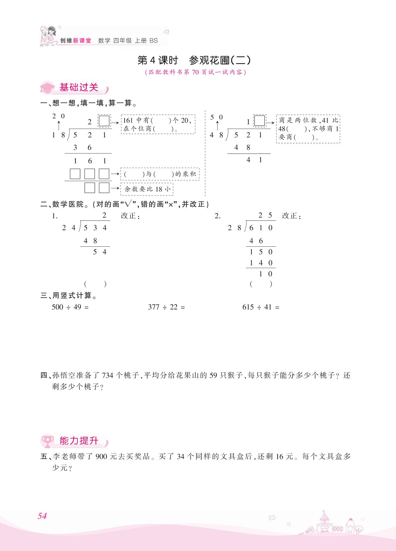 2021上册四年级数学北师版 六 除法——第4课时 参观花圃(二)