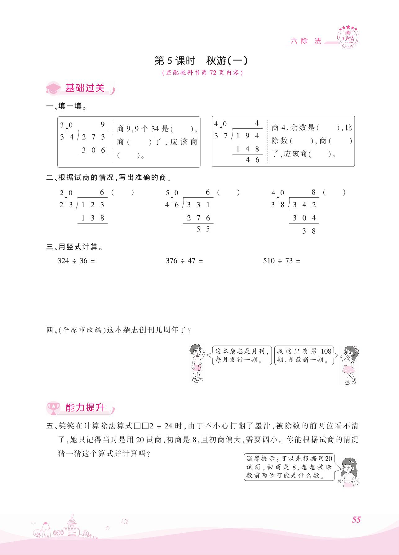 2021上册四年级数学北师版 六 除法——第5课时 秋游(一)