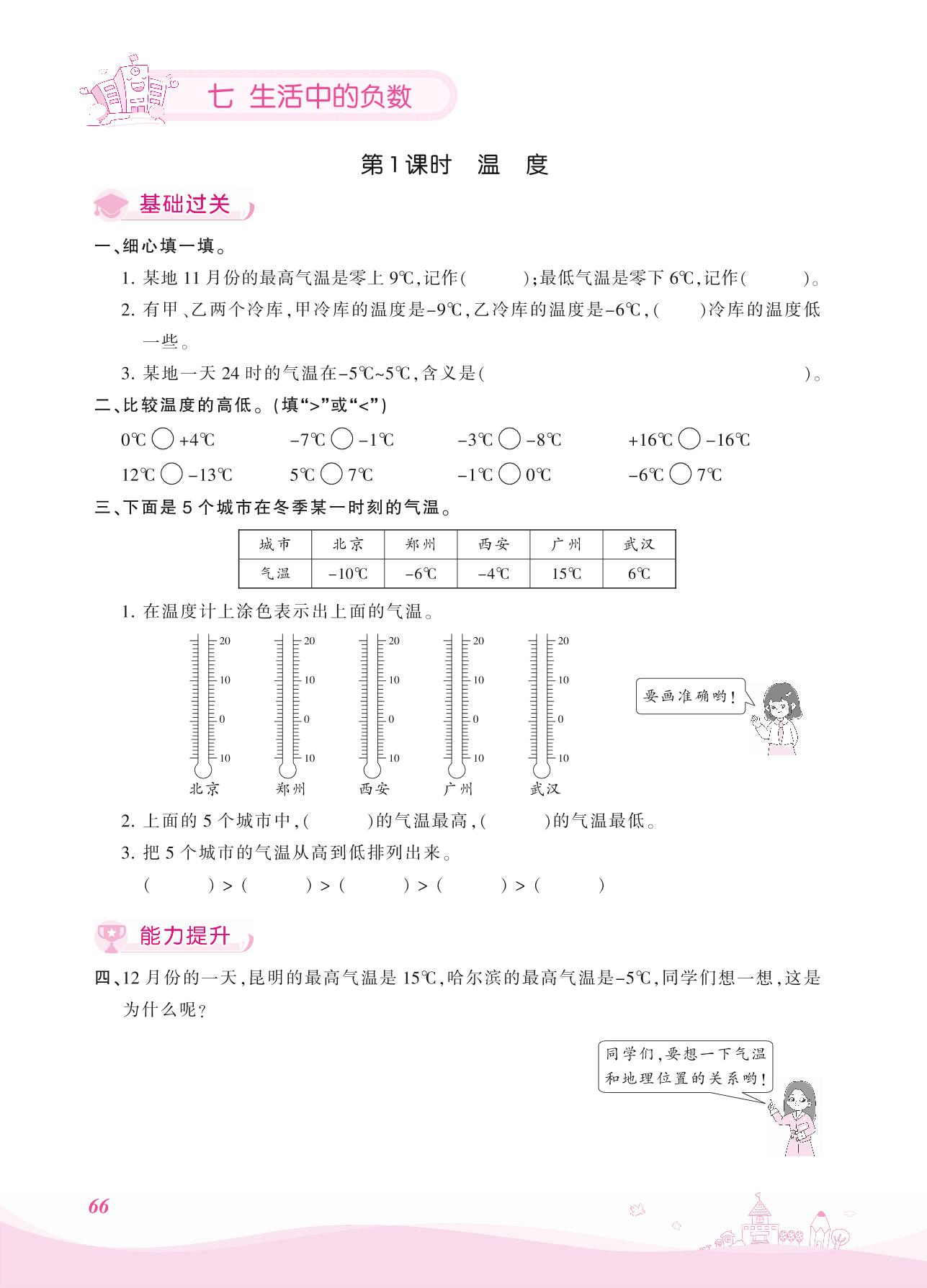 2021上册四年级数学北师版 七 生活中的负数——第1课时 温度