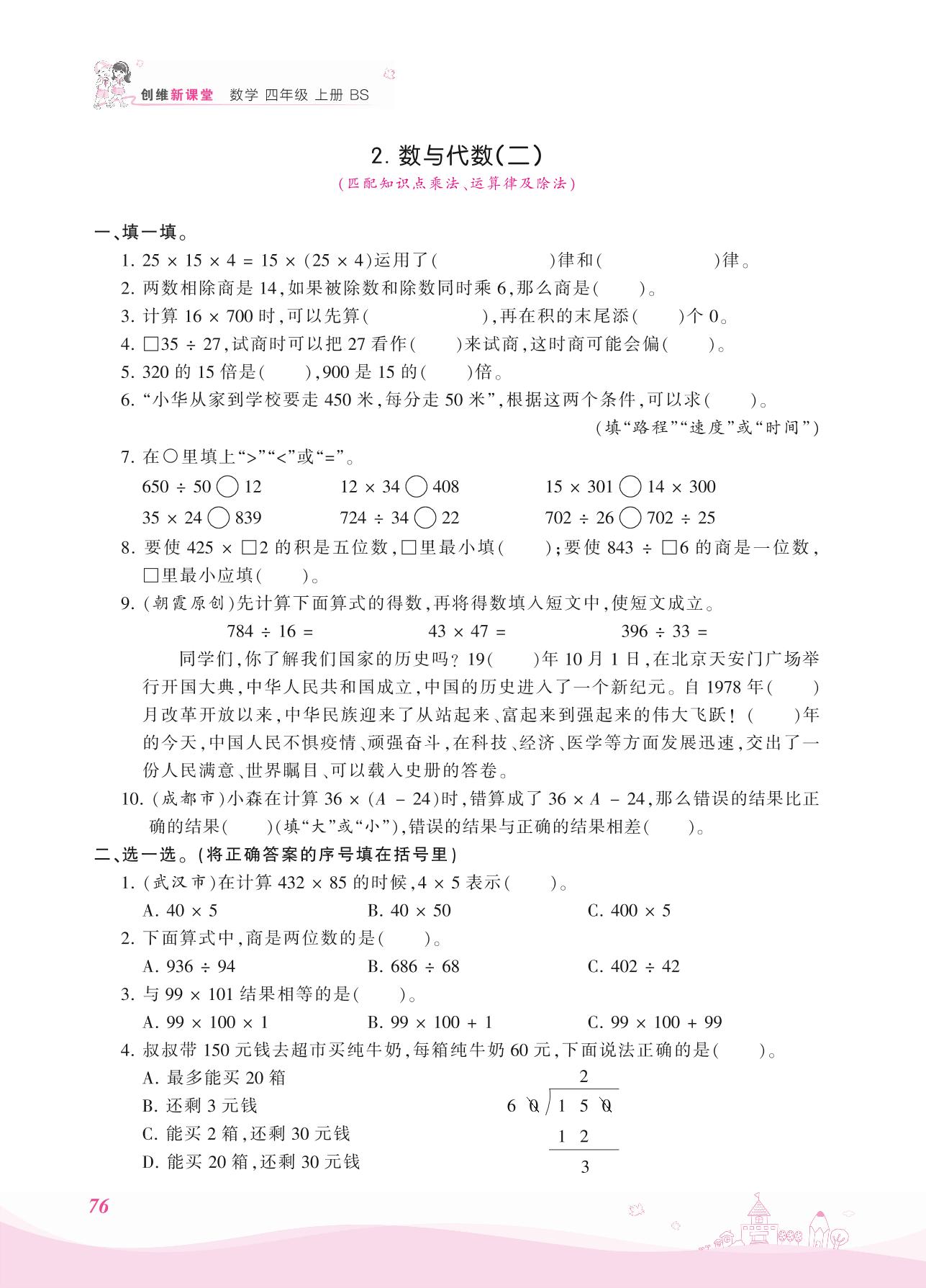 2021上册四年级数学北师版 总复习——2. 数与代数(二)