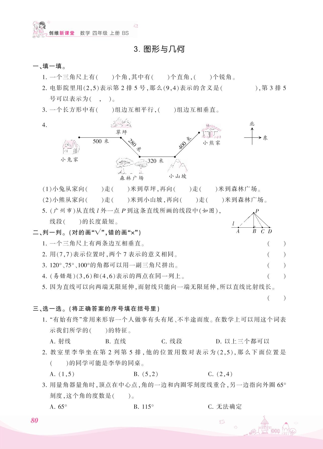 2021上册四年级数学北师版 总复习——3. 图形与几何