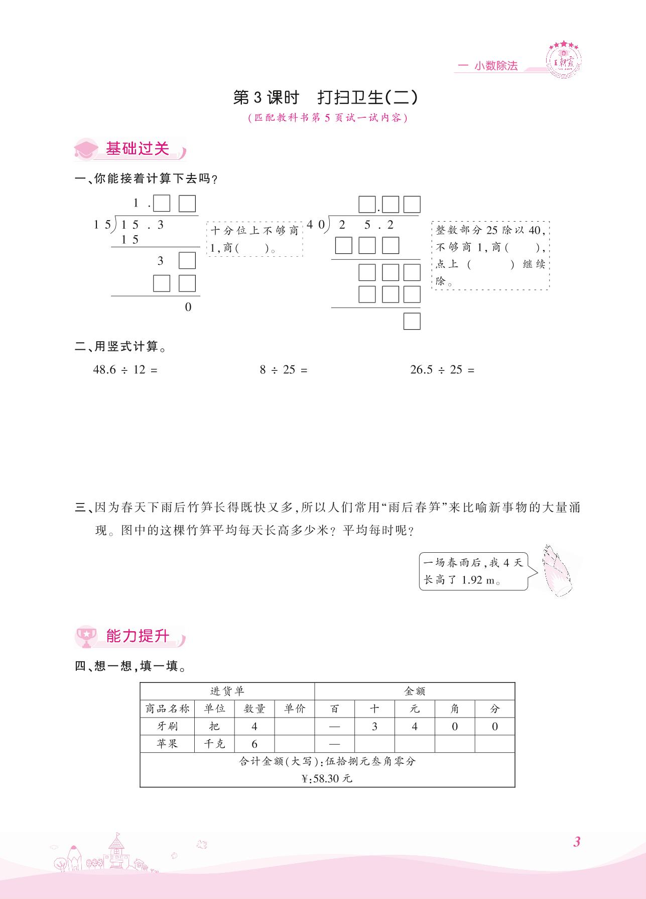 2021上册五年级数学北师版 一 小数除法——第3课时 打扫卫生(二)