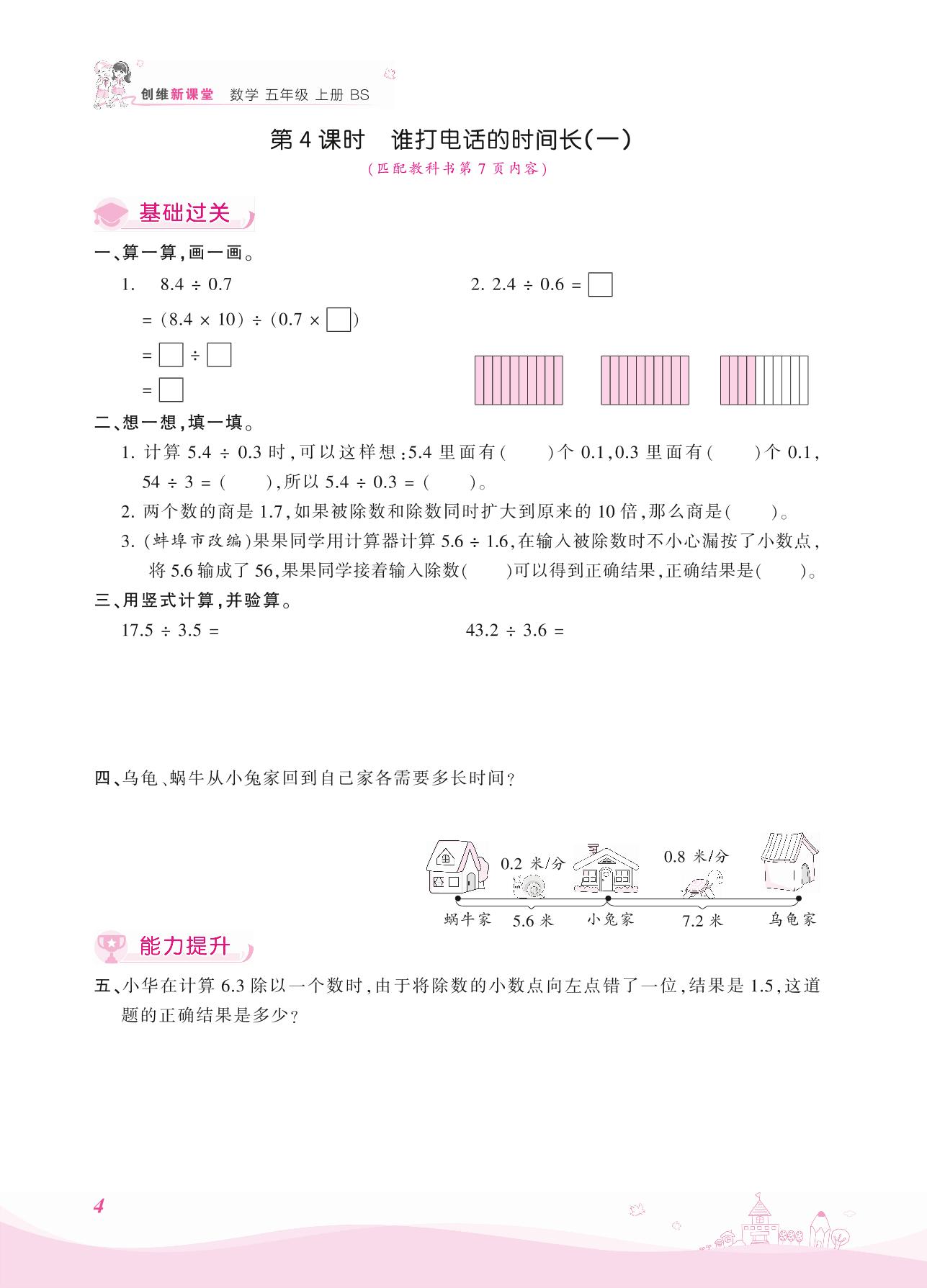 2021上册五年级数学北师版 一 小数除法——第4课时 谁打电话的时间长(一)
