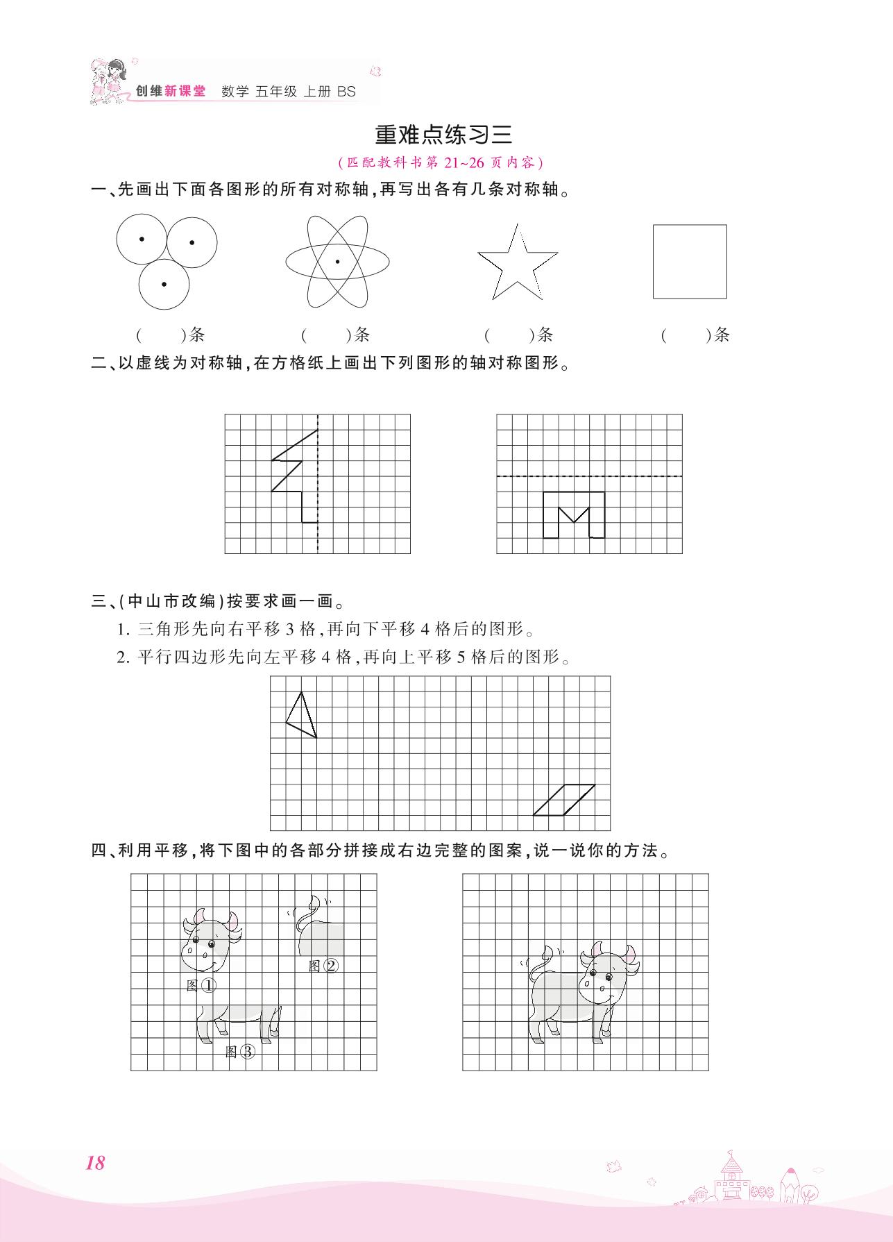 2021上册五年级数学北师版 二 轴对称和平移 ——重难点练习三