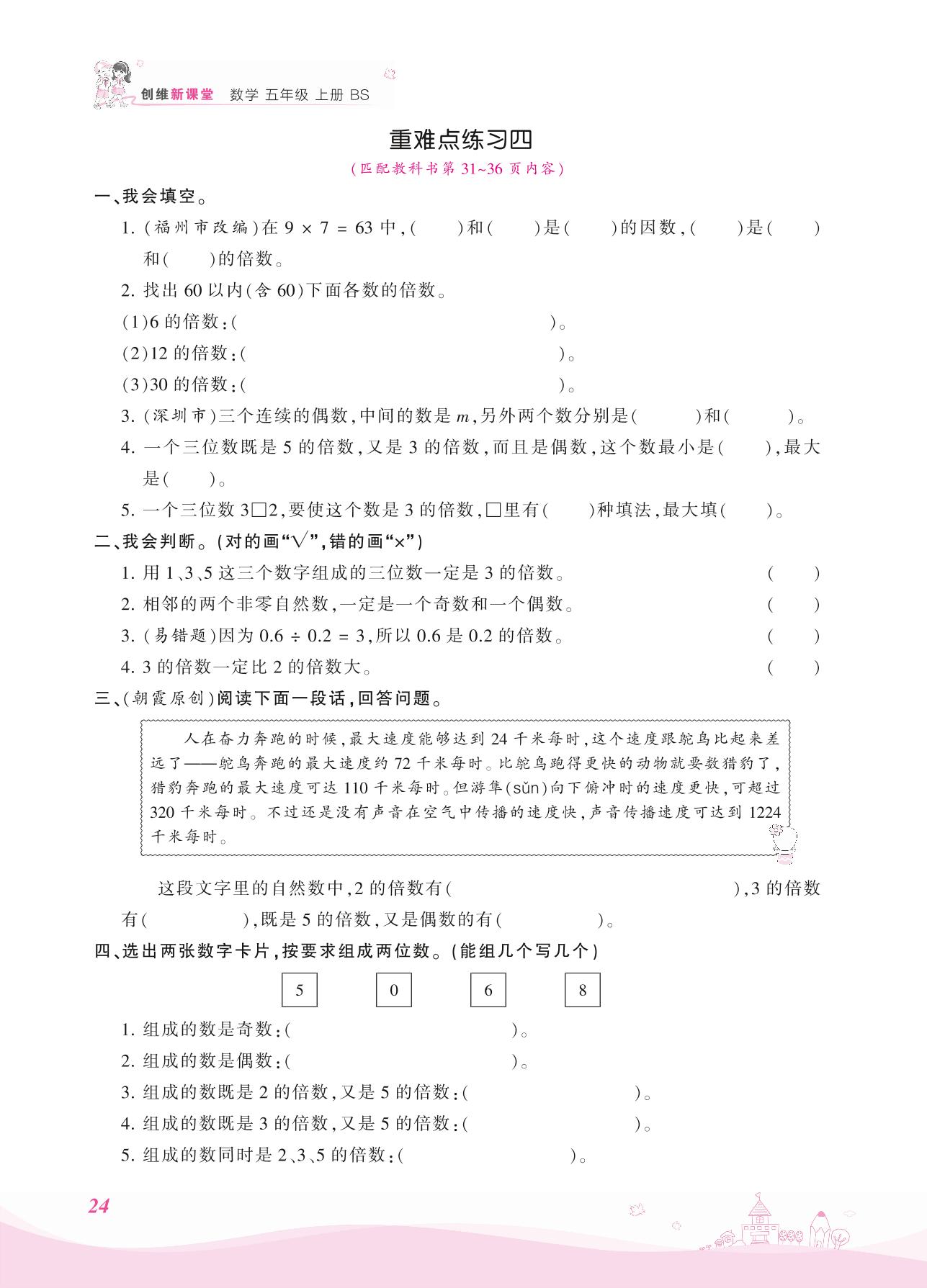 2021上册五年级数学北师版 三 倍数与因数——重难点练习四