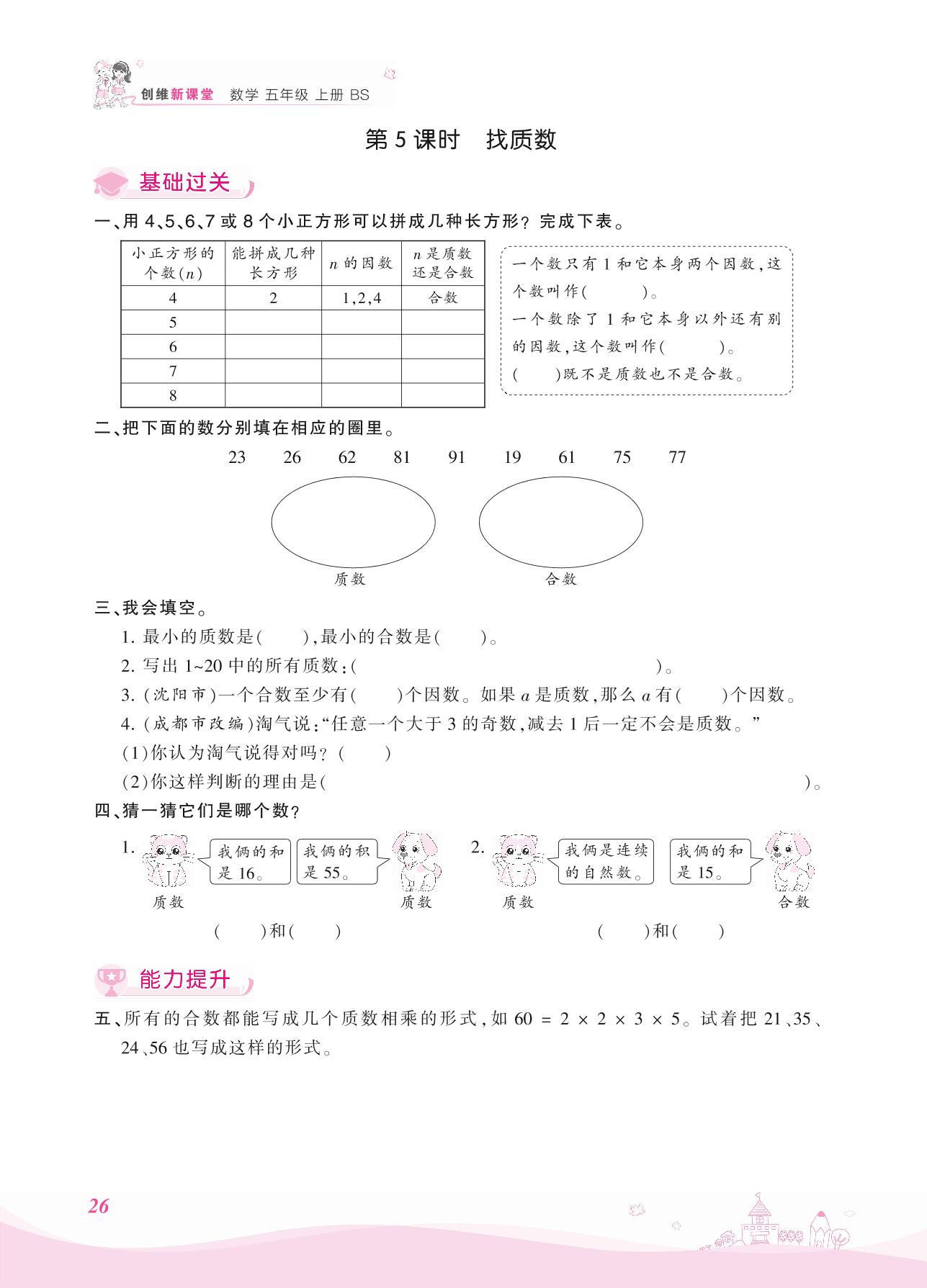 2021上册五年级数学北师版 三 倍数与因数——第5课时 找质数