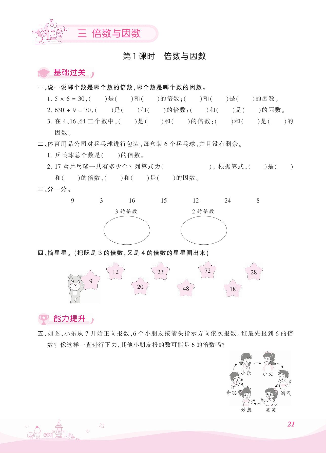 2021上册五年级数学北师版 三 倍数与因数——第1课时 倍数与因数