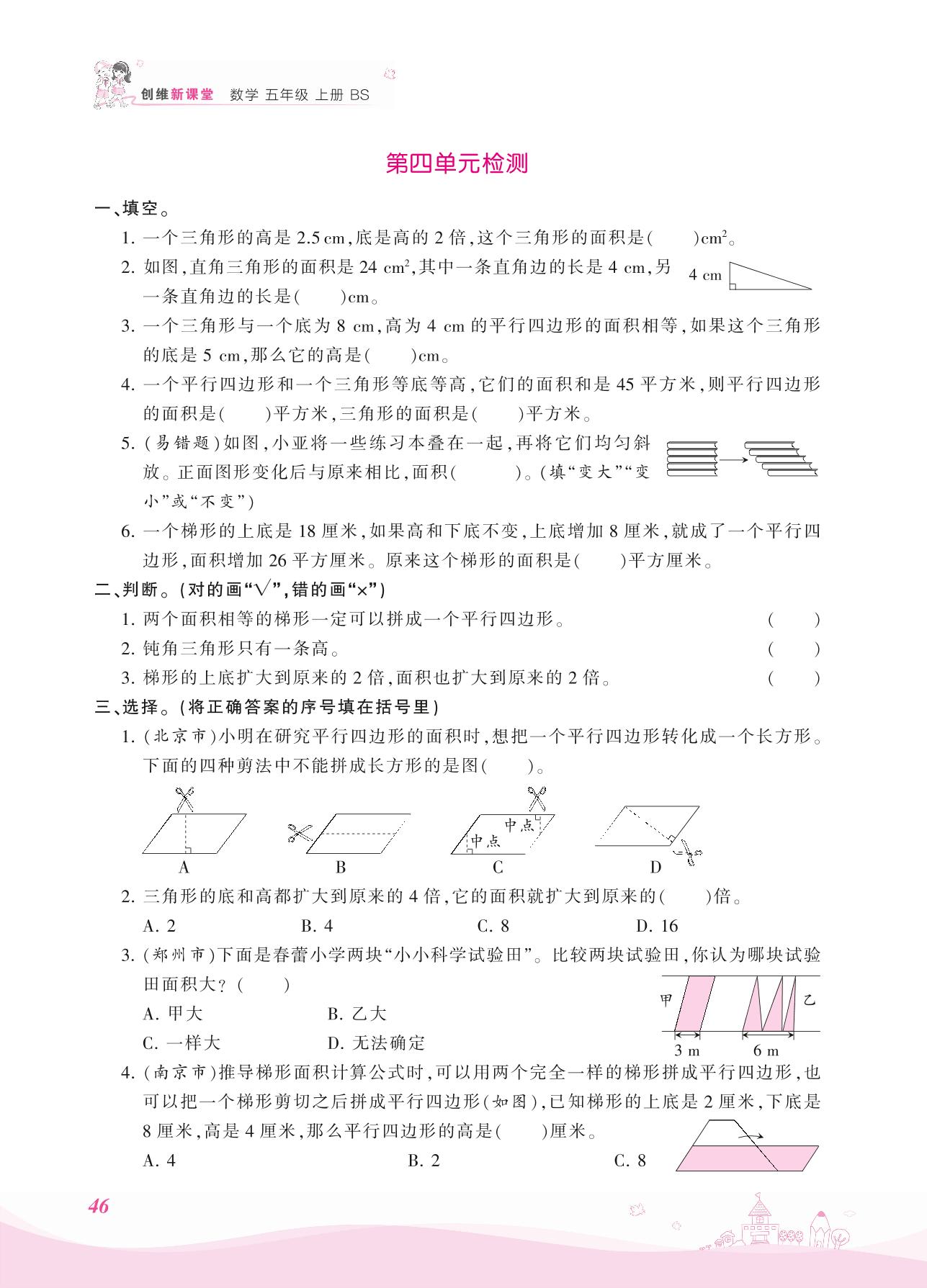 2021上册五年级数学北师版 四 多边形的面积——第四单元检测