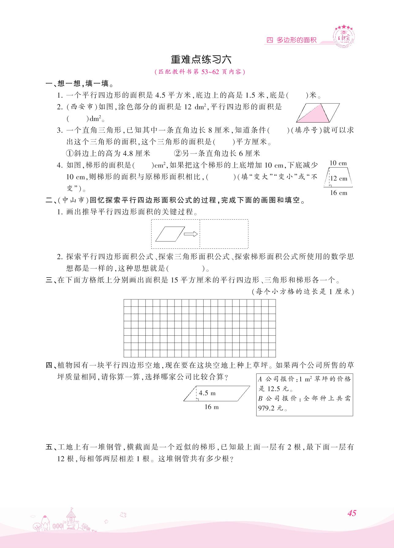 2021上册五年级数学北师版 四 多边形的面积——重难点练习六