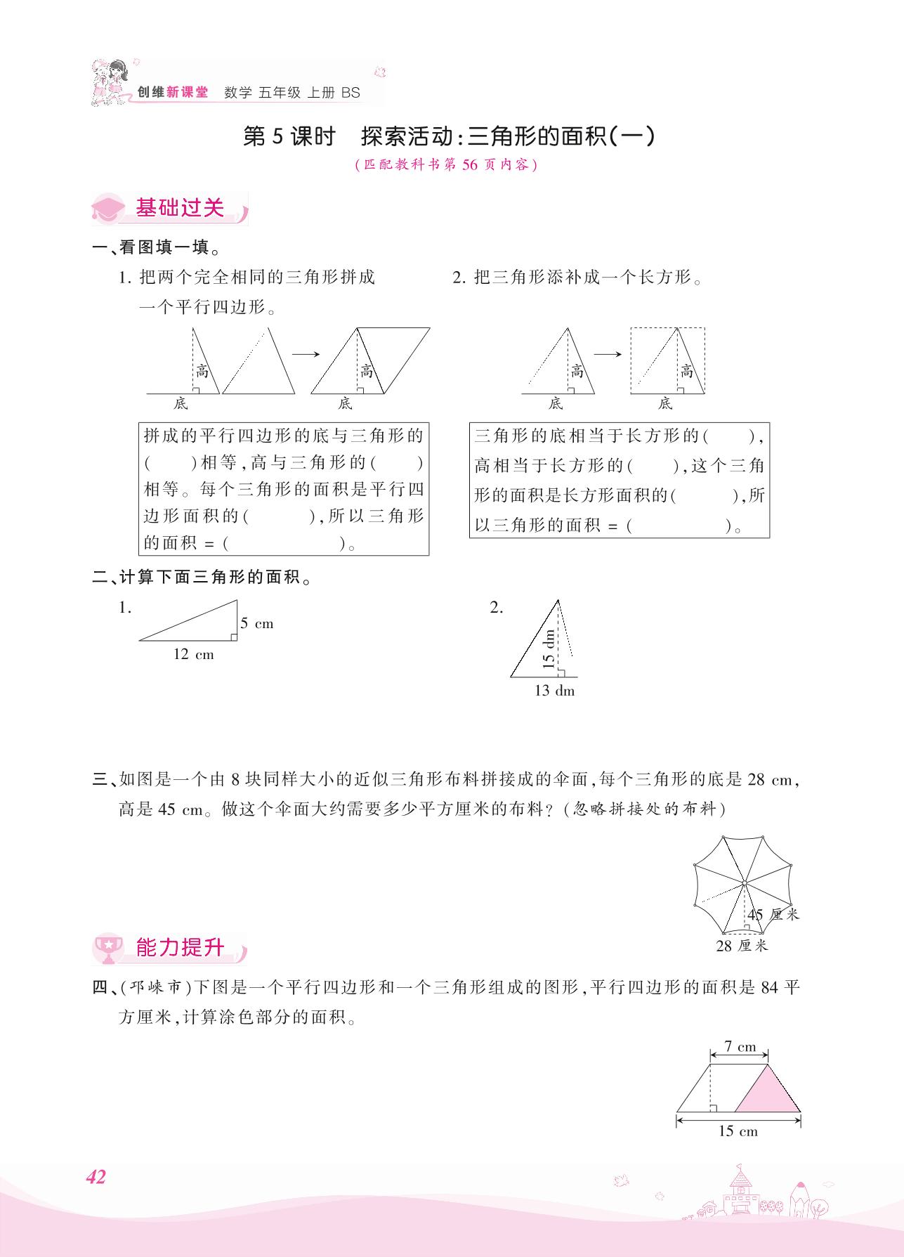 2021上册五年级数学北师版 四 多边形的面积——第5课时 探索活动:三角形的面积(一)