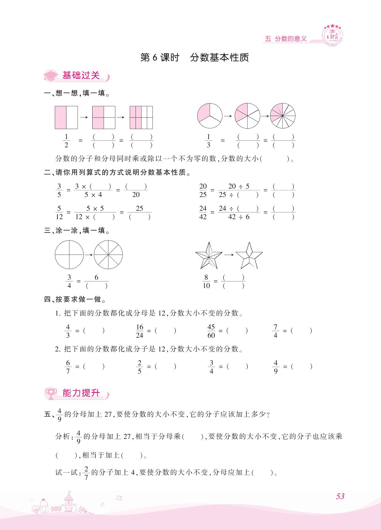 2021上册五年级数学北师版 五 分数的意义——第6课时 分数基本性质