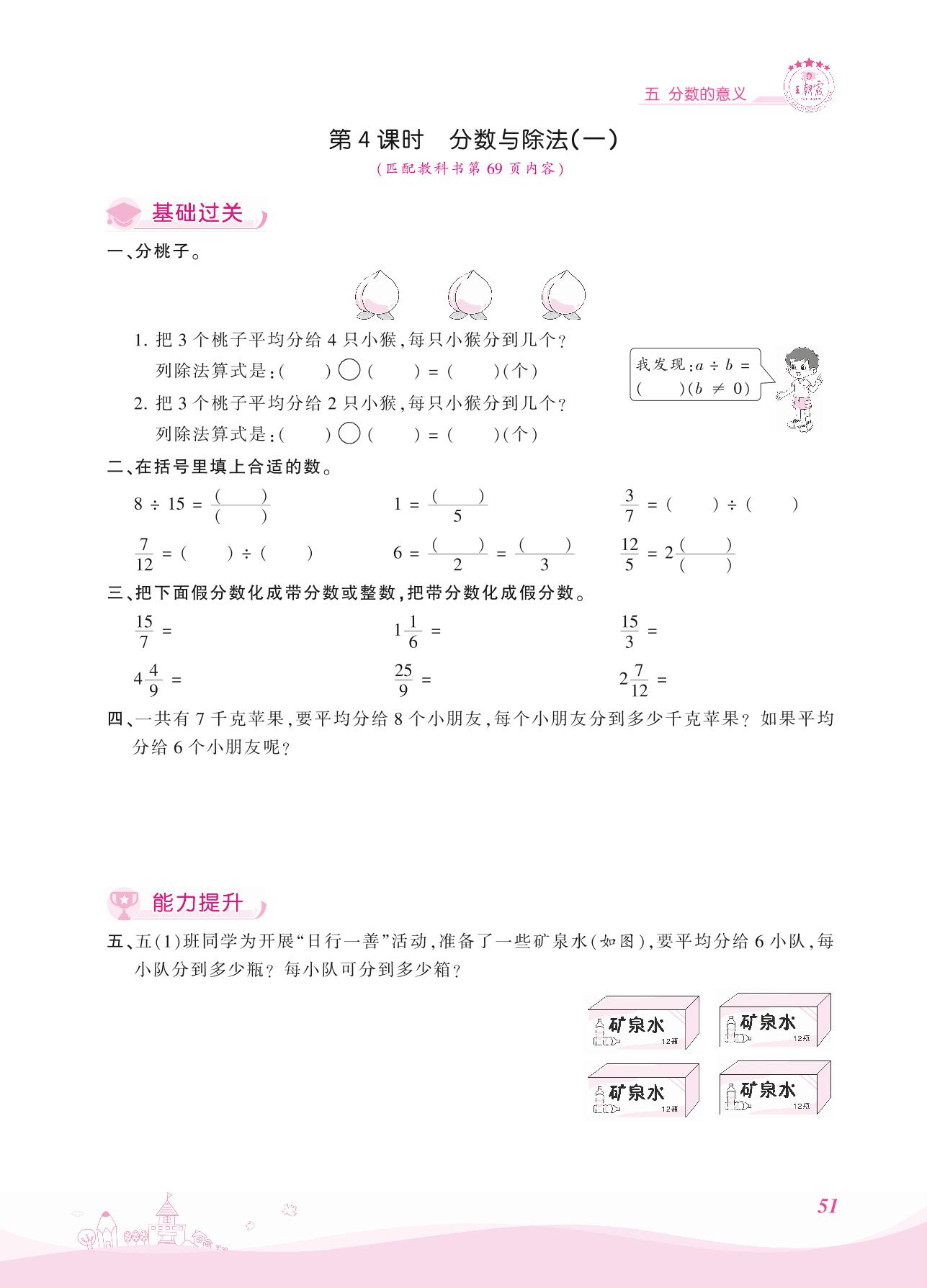 2021上册五年级数学北师版 五 分数的意义——第4课时 分数与除法(一)