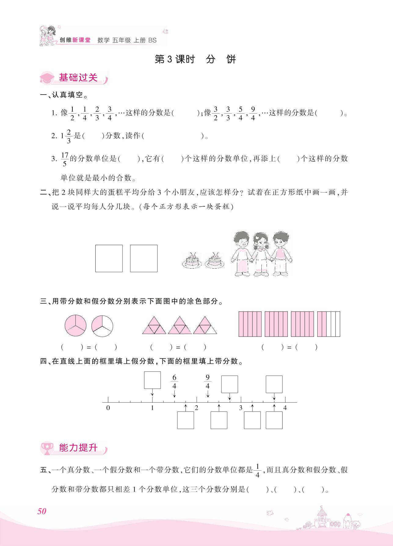2021上册五年级数学北师版 五 分数的意义——第3课时 分饼