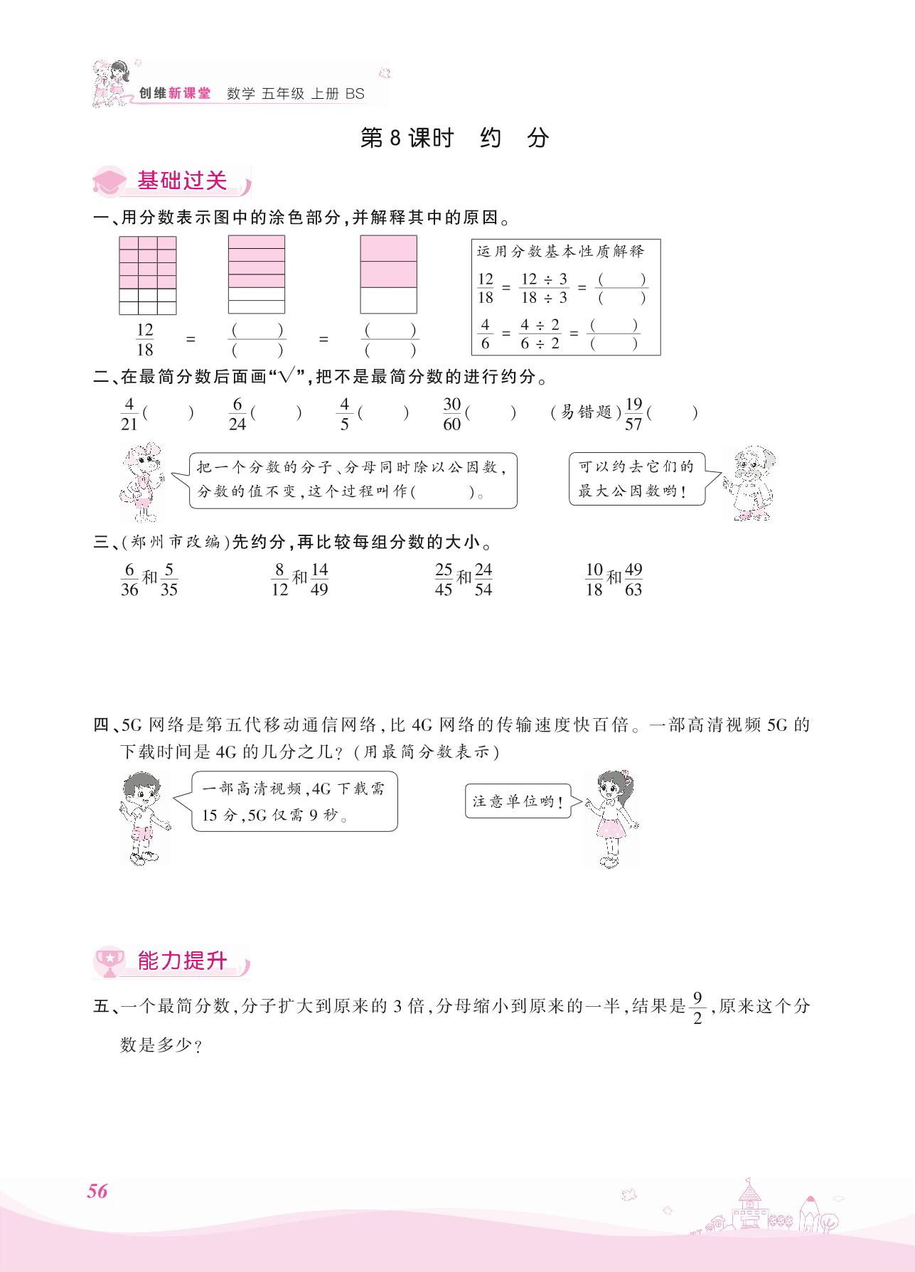 2021上册五年级数学北师版 五 分数的意义——第8课时 约分