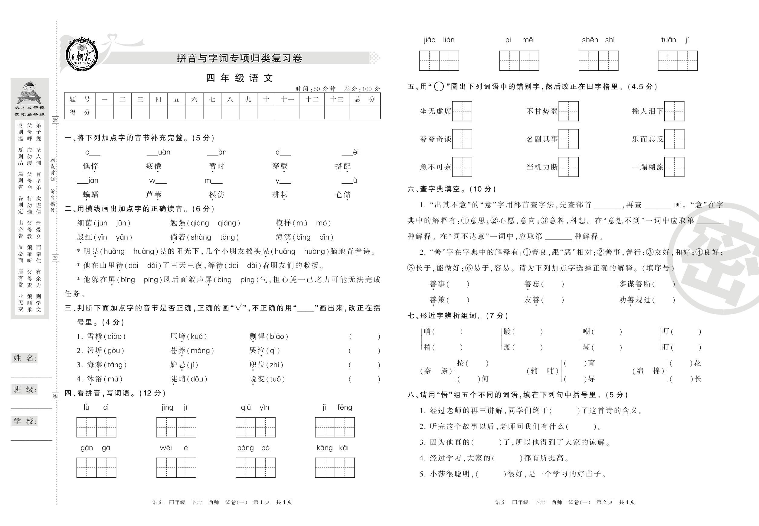 王朝霞期末专项卷四年级下册语文(西师版)_R210801211024【1】