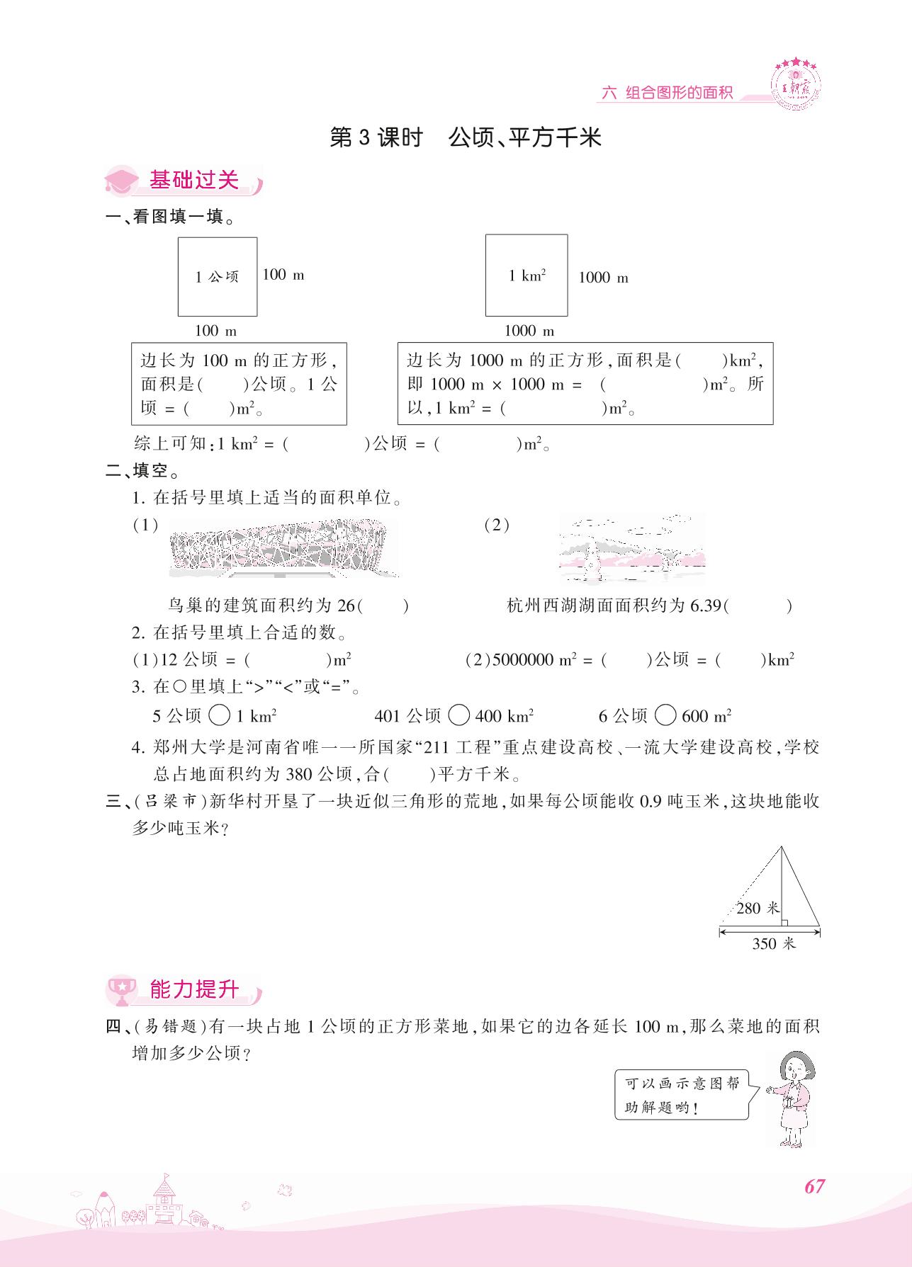 2021上册五年级数学北师版 六 组合图形的面积——第3课时 公顷、平方千米
