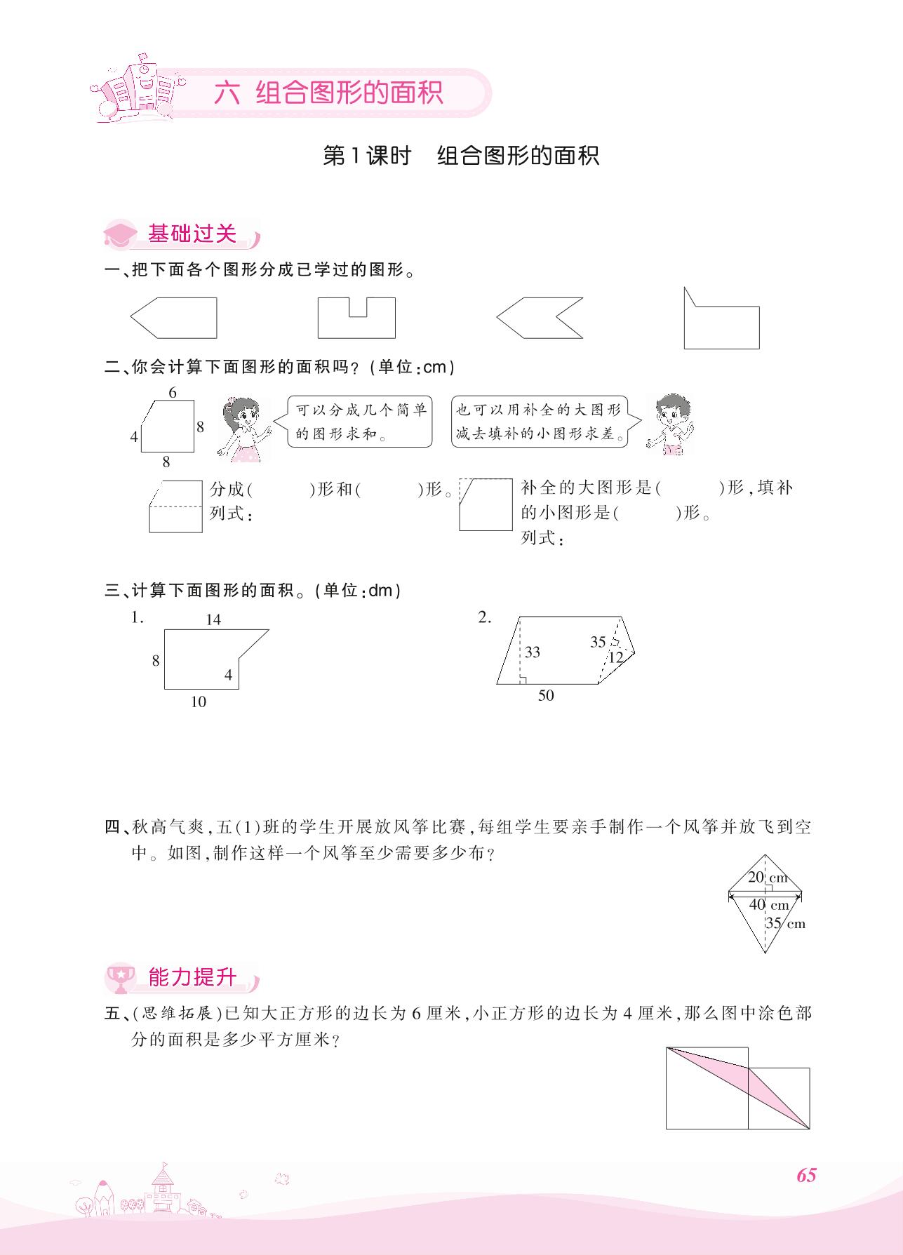 2021上册五年级数学北师版 六 组合图形的面积——第1课时 组合图形的面积